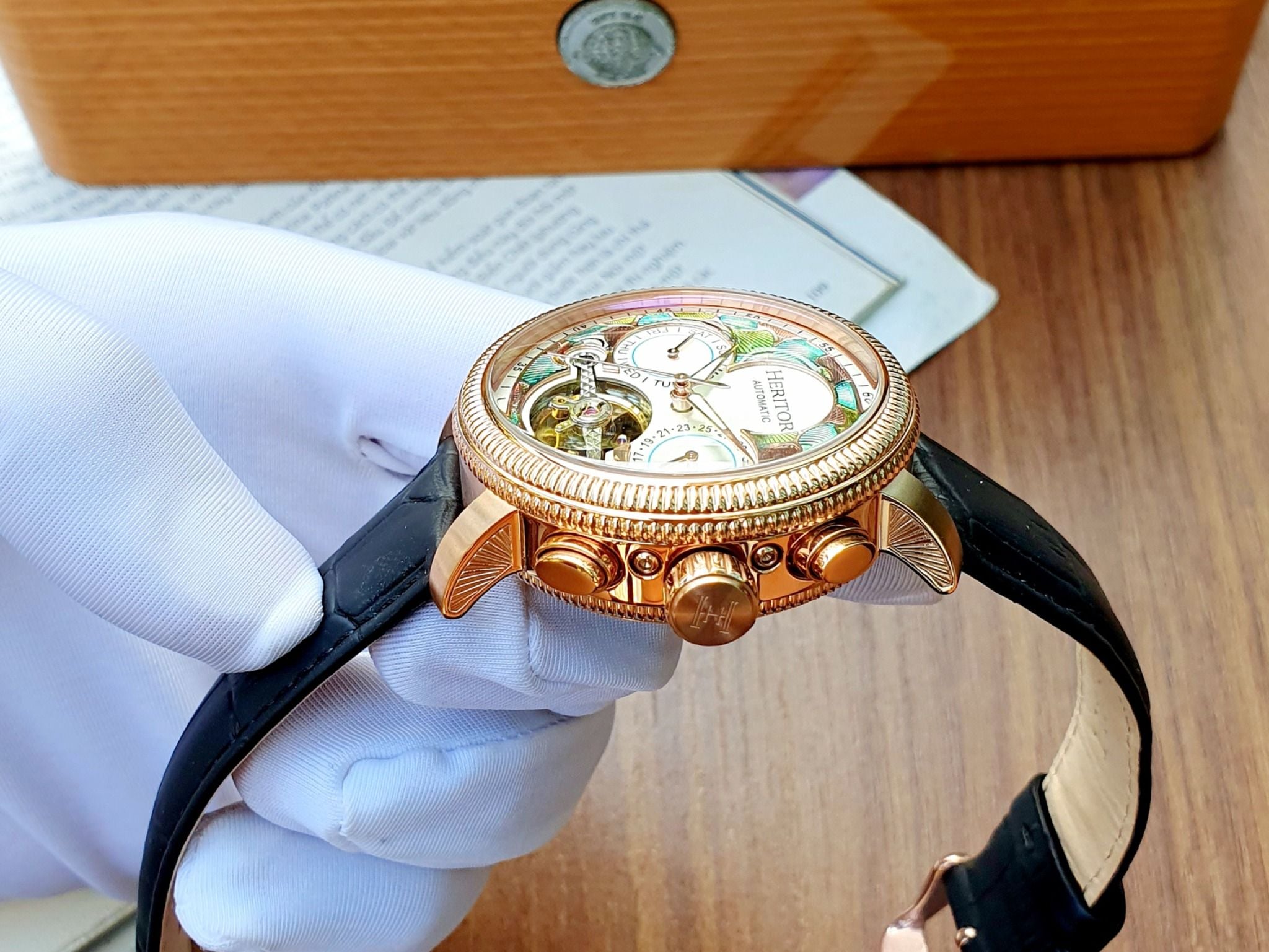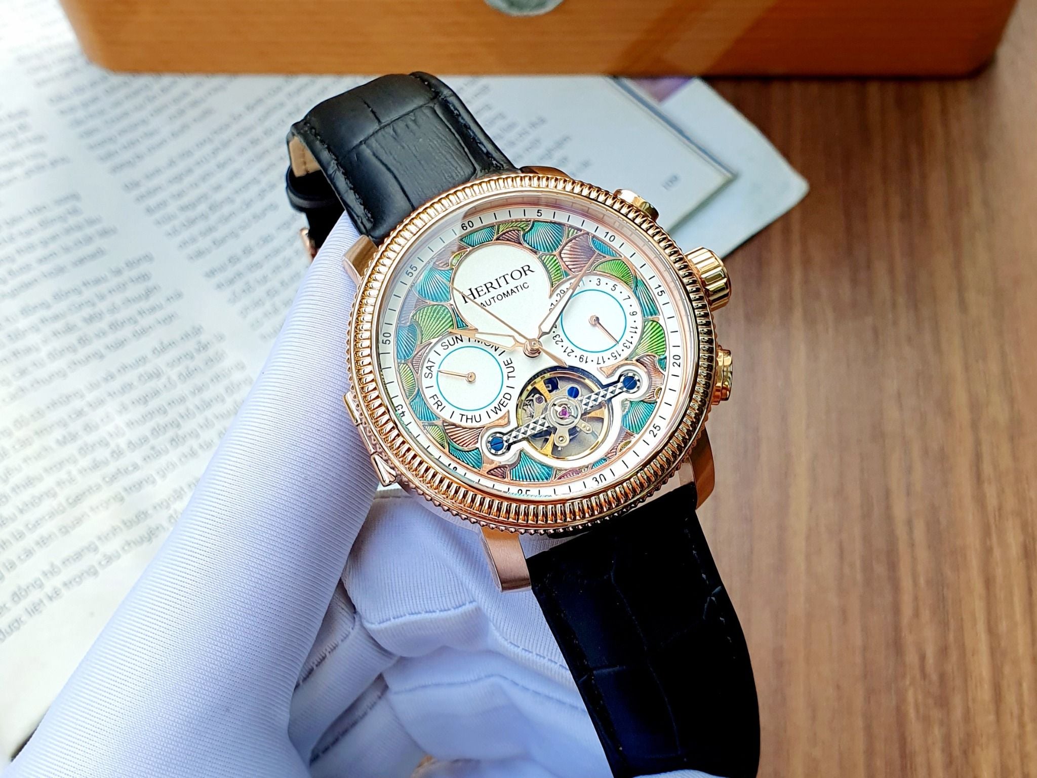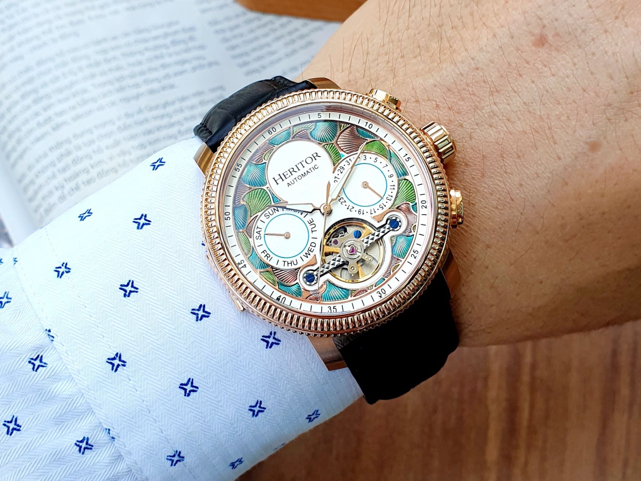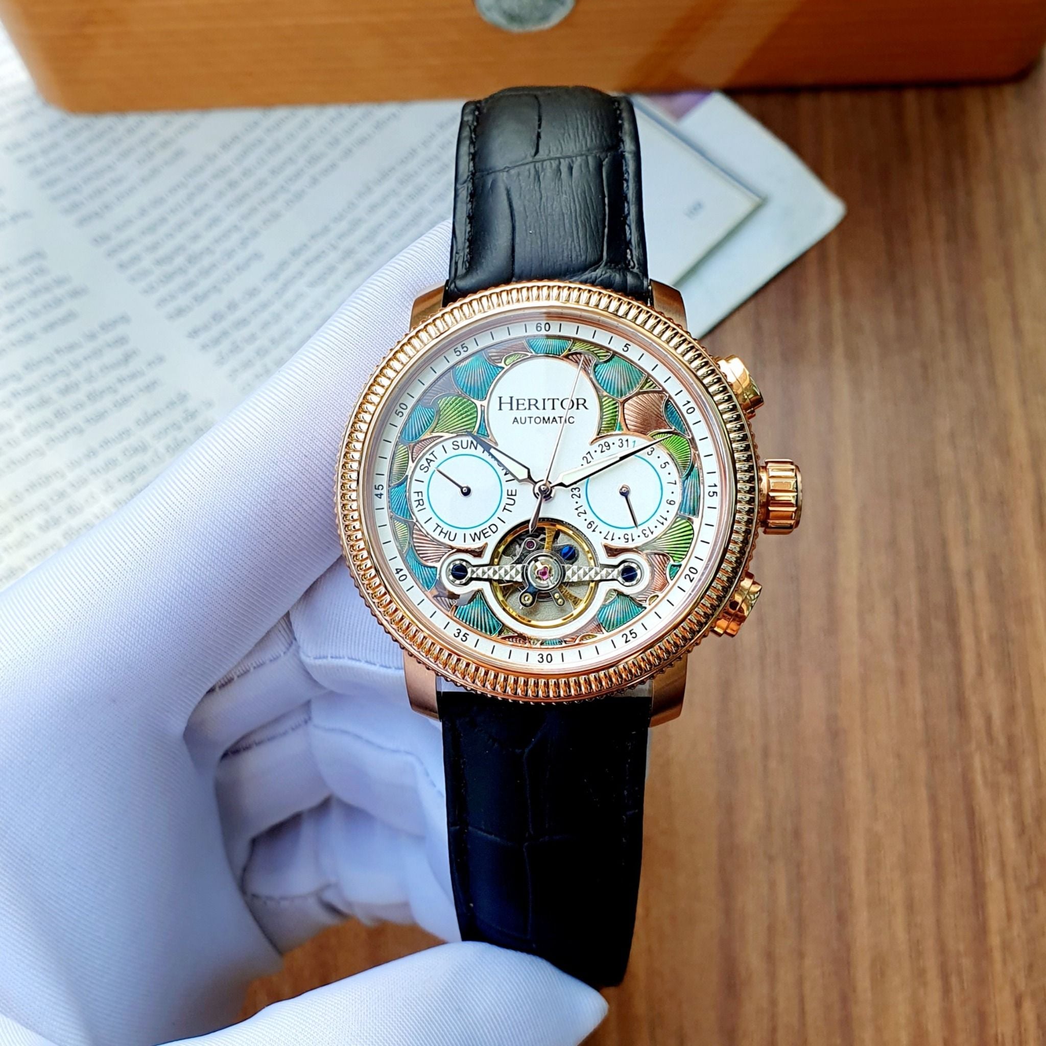 A - ( THANH LÝ - Heritor Automatic Aura Semi-Skeleton HERHR3506 - Đồng Hồ Nam