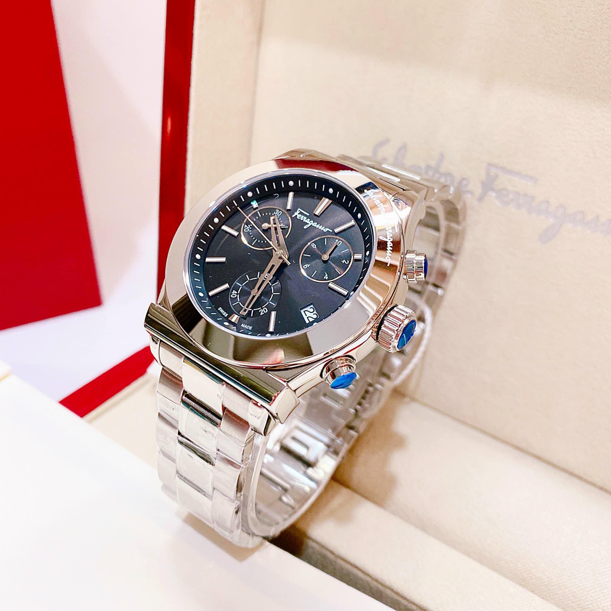 A - Salvatore Ferragamo 1898 Sport Chronograph Quartz Black Dial Silver FH6010016 42mm - Đồng Hồ Nam