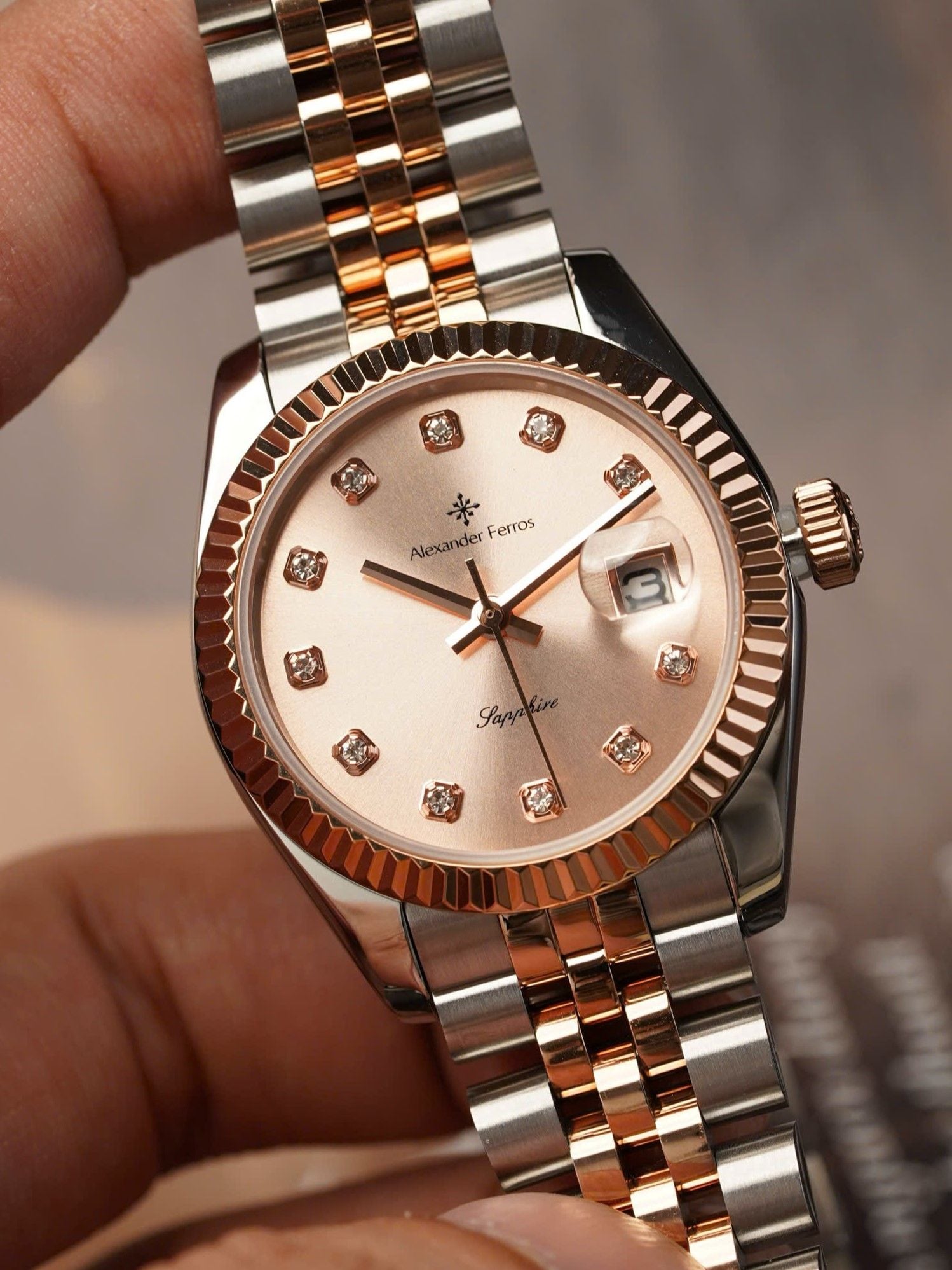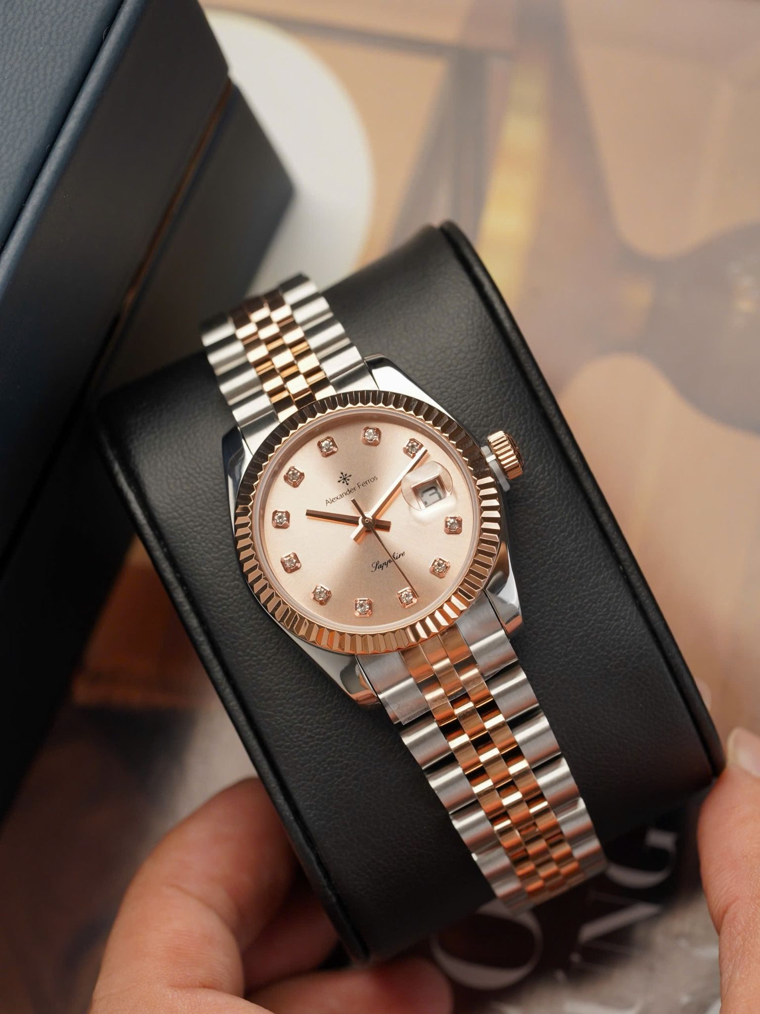 B - [ NỮ ] ALEXANDER FERROS Quartz 8222D-16 31mm - Đồng Hồ Nữ