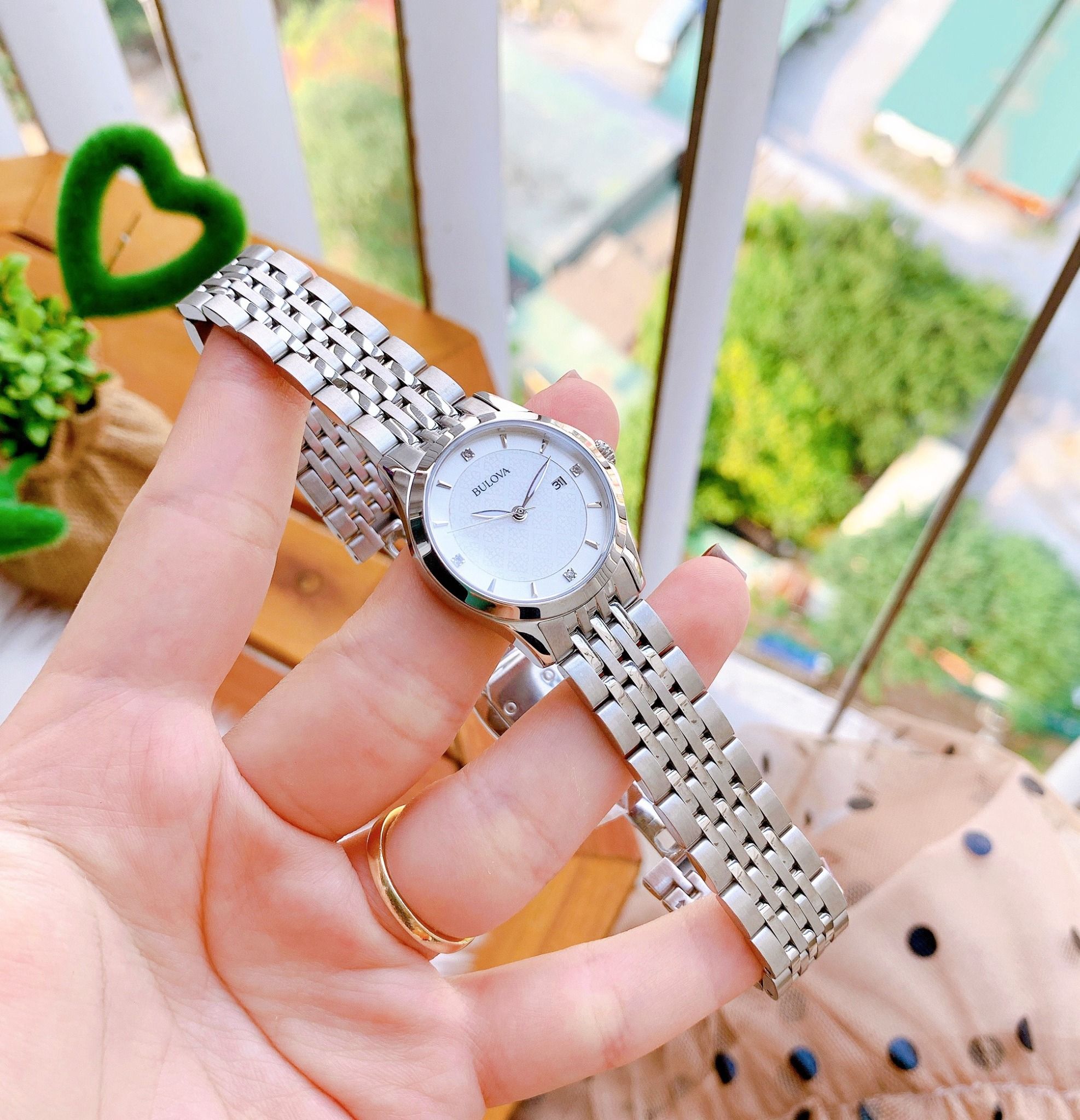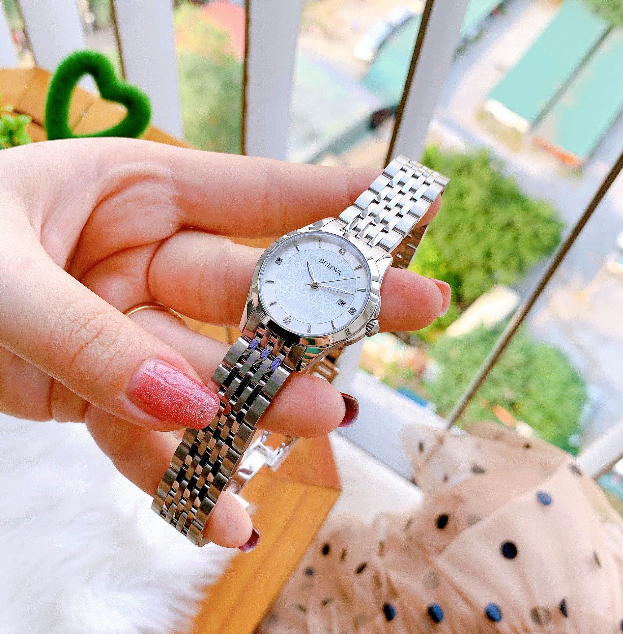 Bulova Quartz 96S160 ( Nữ ) có mặt số tròn nhỏ nhắn, kim chỉ và vạch số thanh mãnh nổi bật trên nền số màu trắng trang nhã, dây đeo kim loại màu bạc sáng bóng, đem lại phụ kiện thời trang quyến rũ, thanh lịch cho phái nữ.