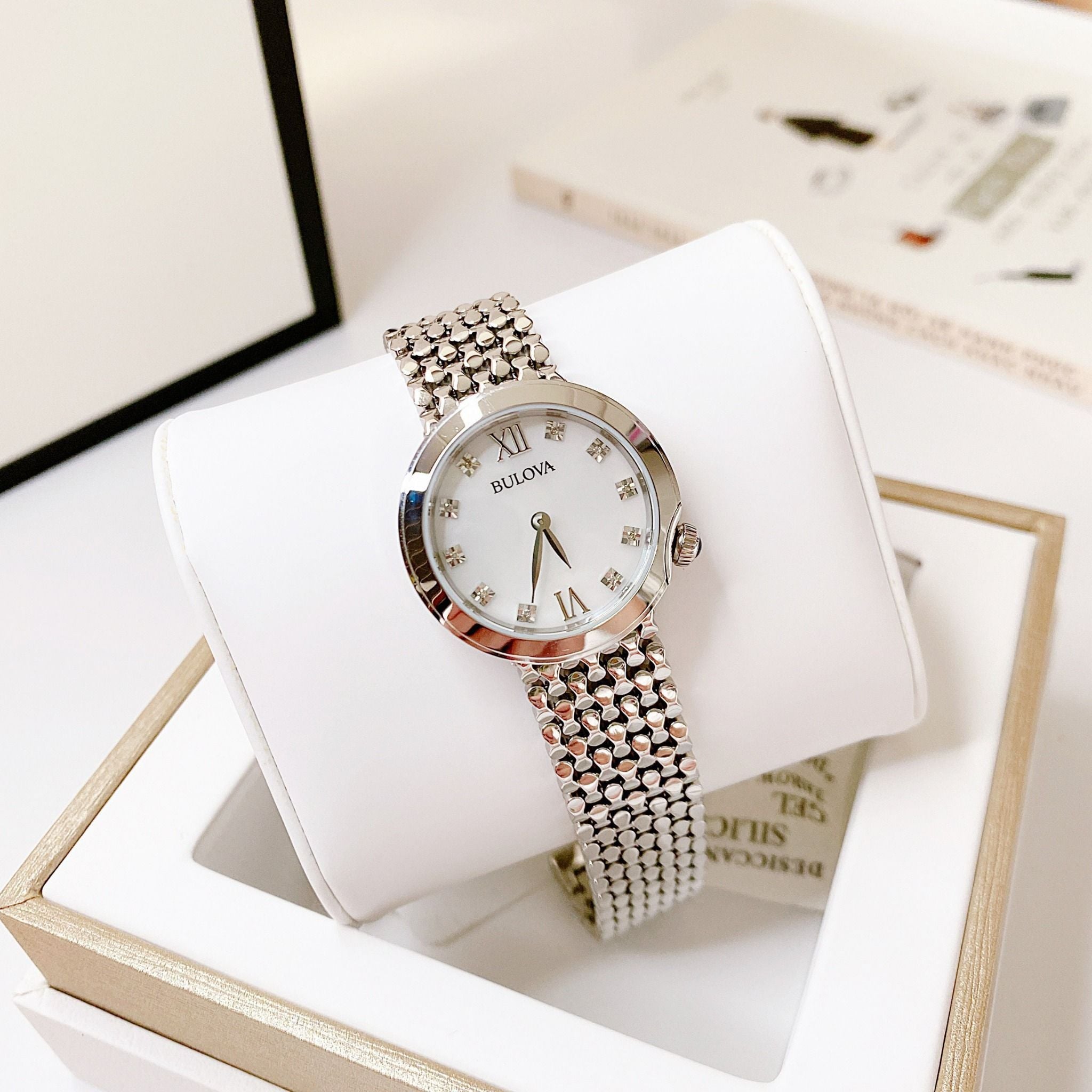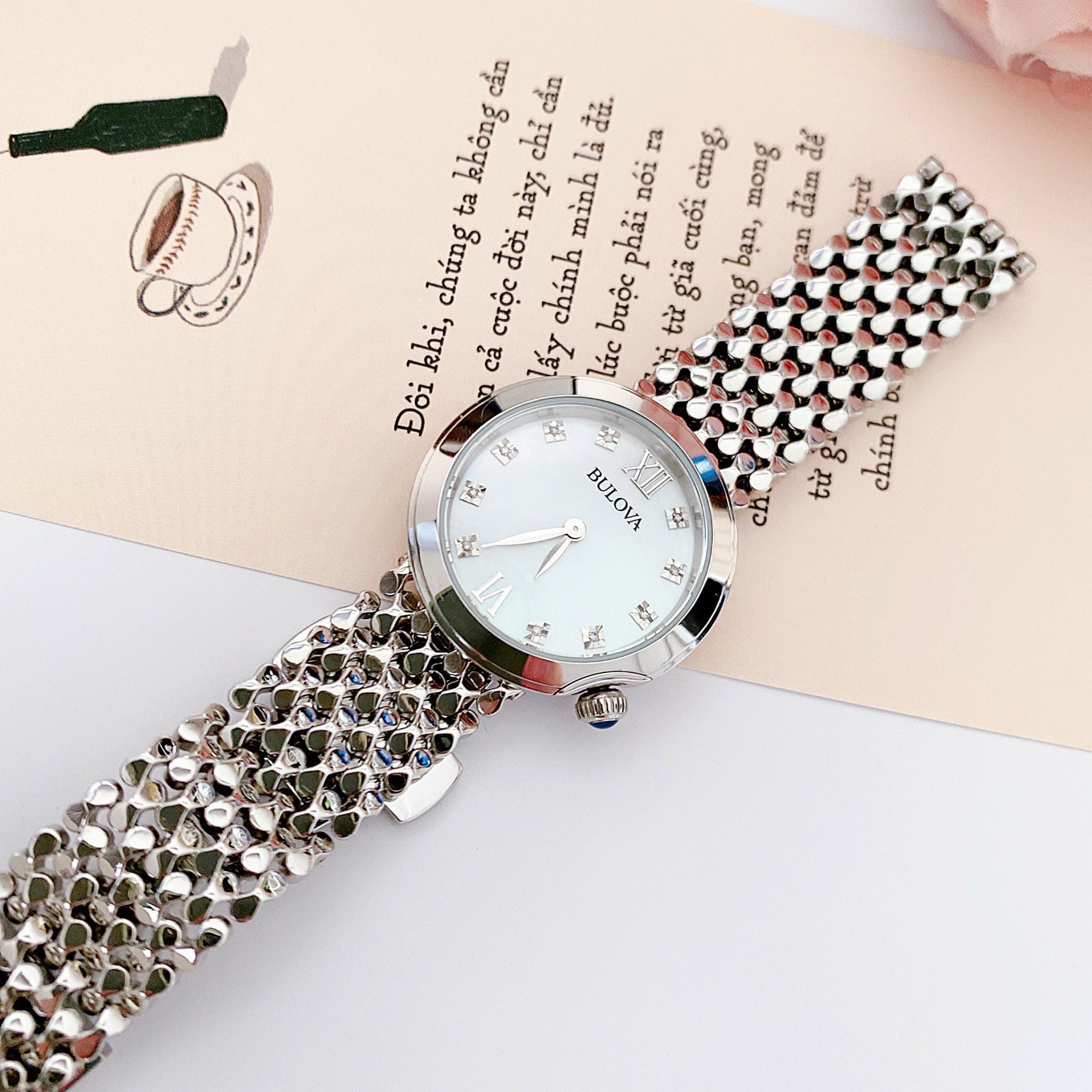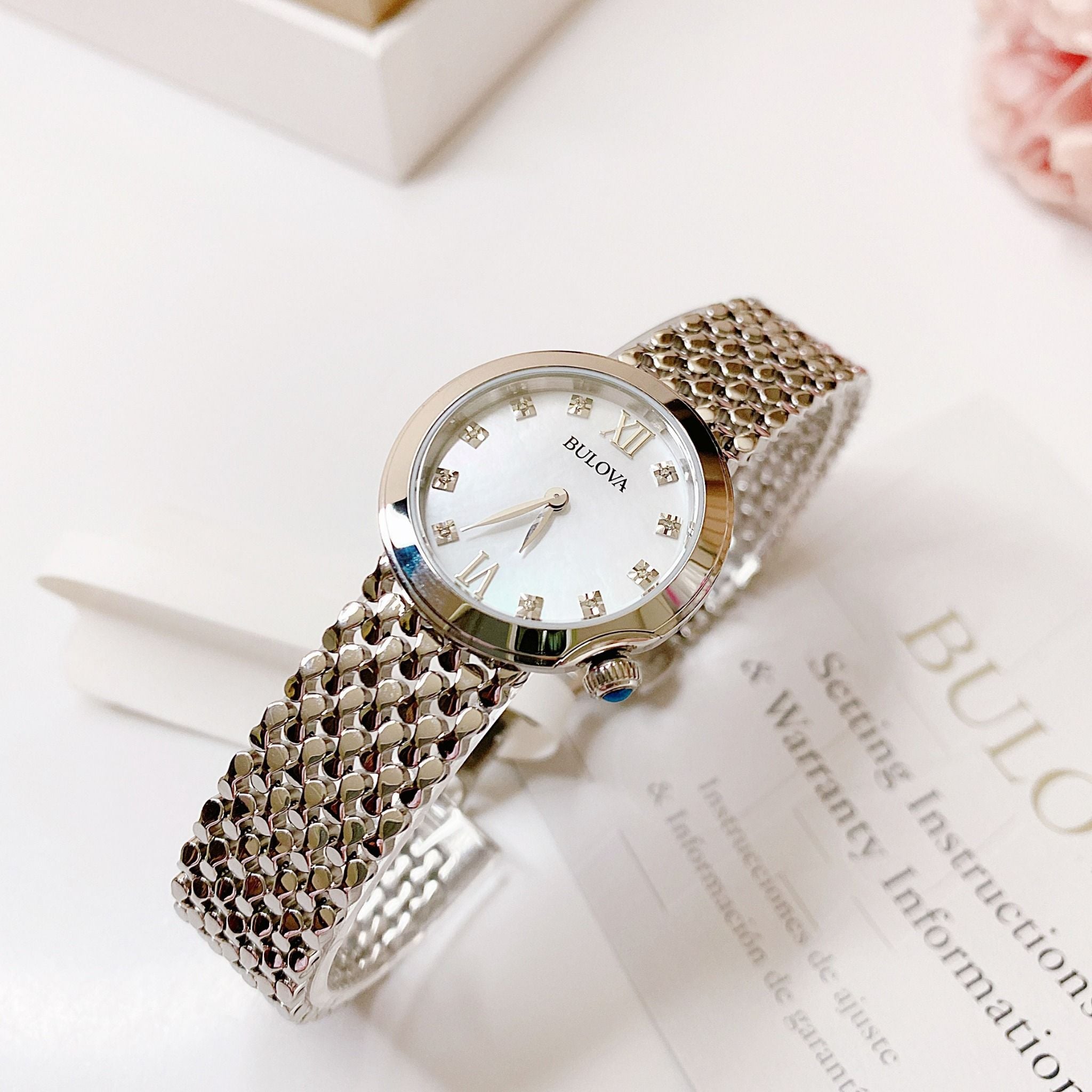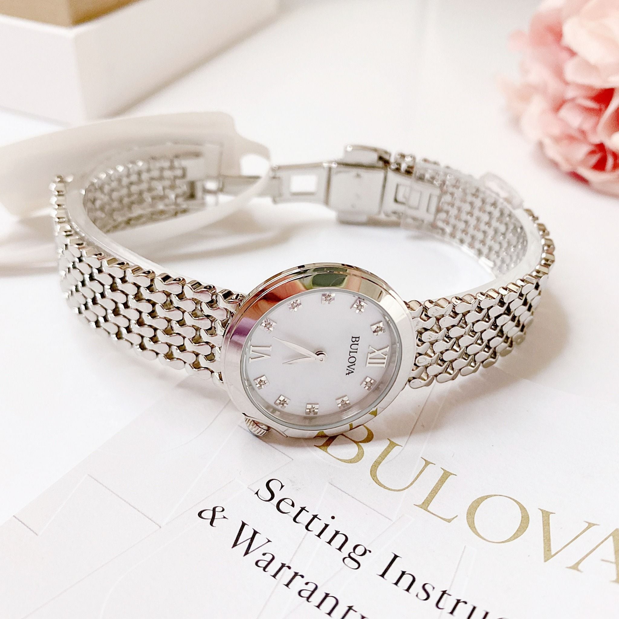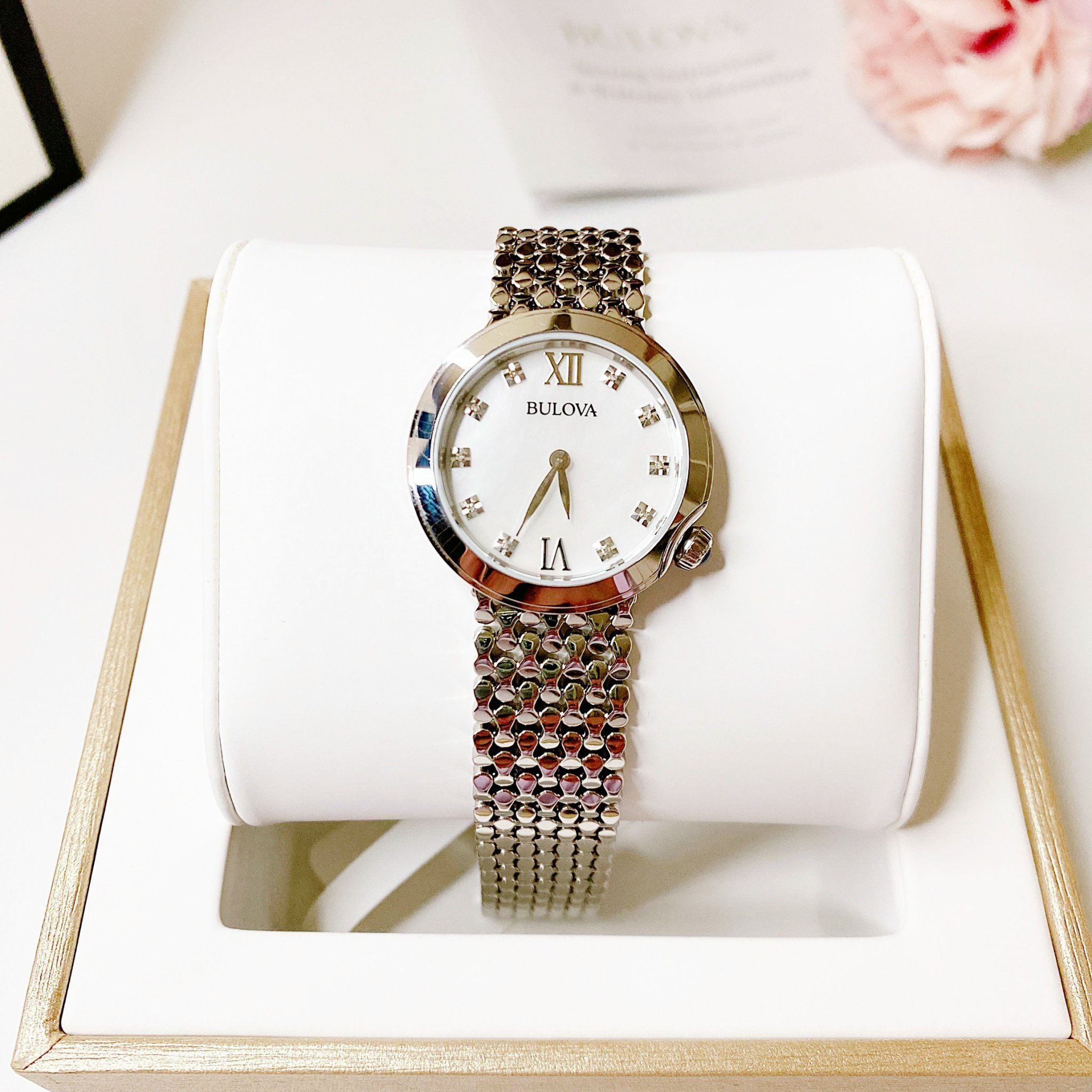 Bulova Quartz 96P163 Mother Of Pearl Dial Stainless Steel - Đồng Hồ Nữ