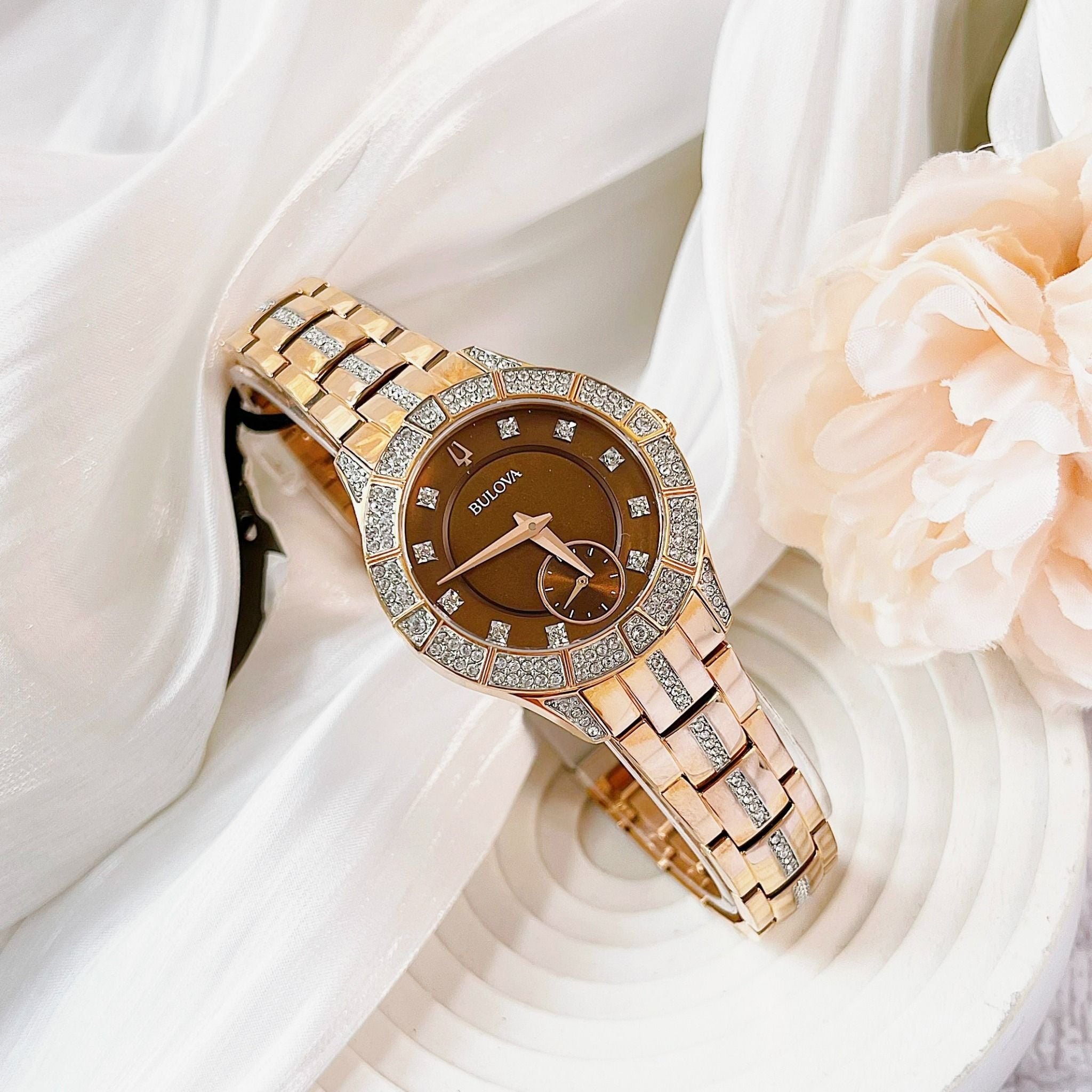 Bulova Quartz 98L284 Phantom Crystal Chocolate - Đồng Hồ Nữ