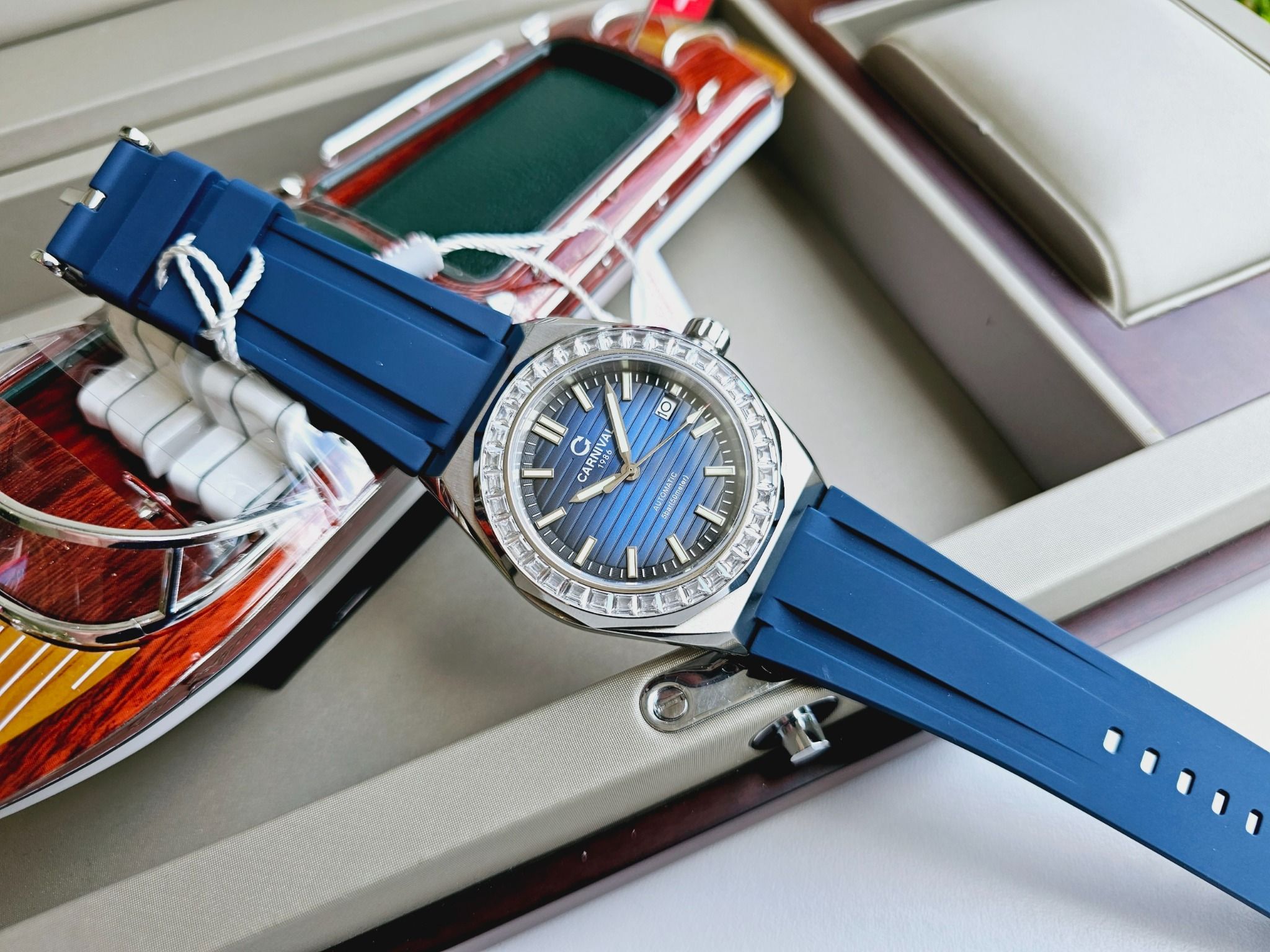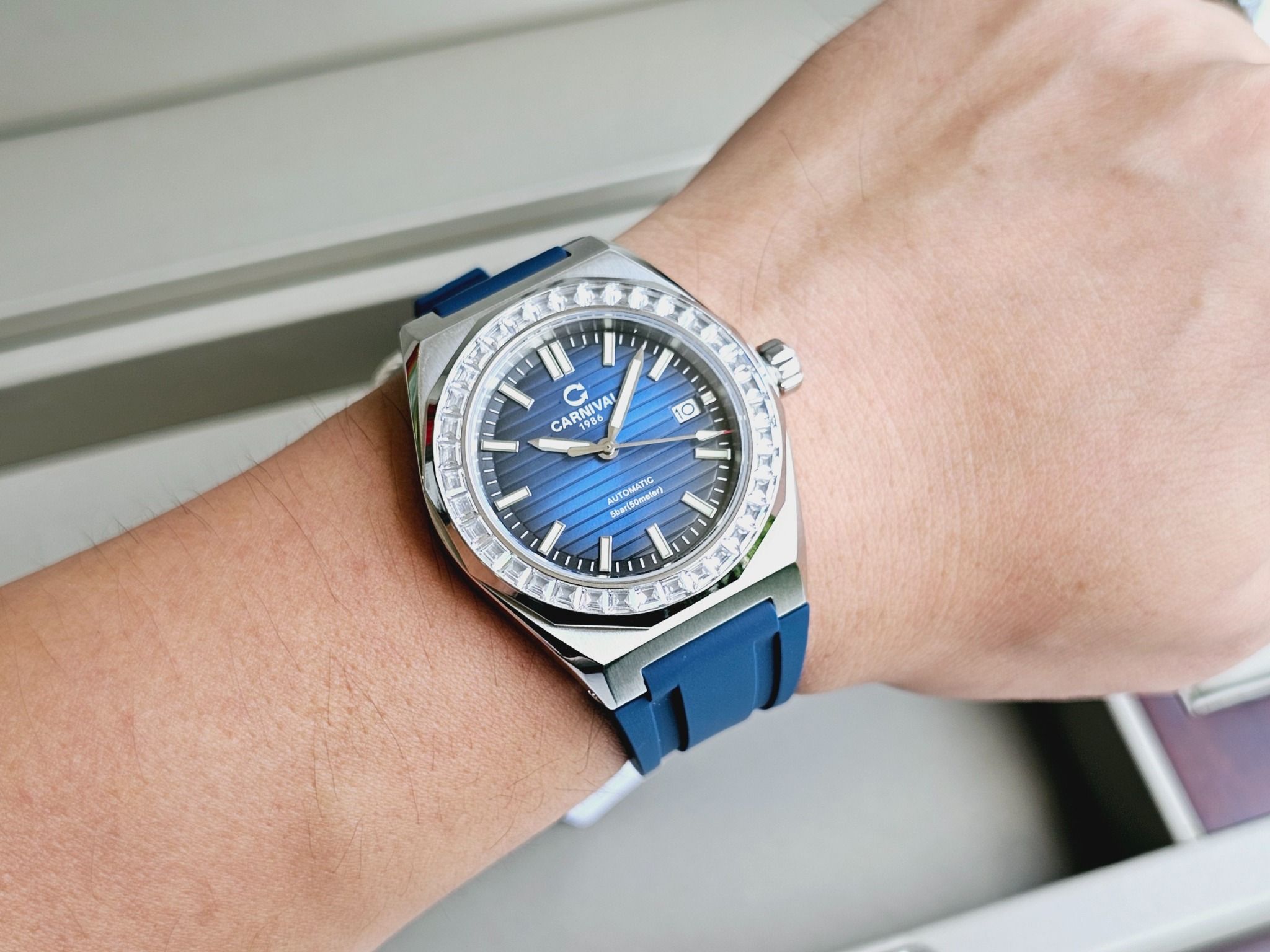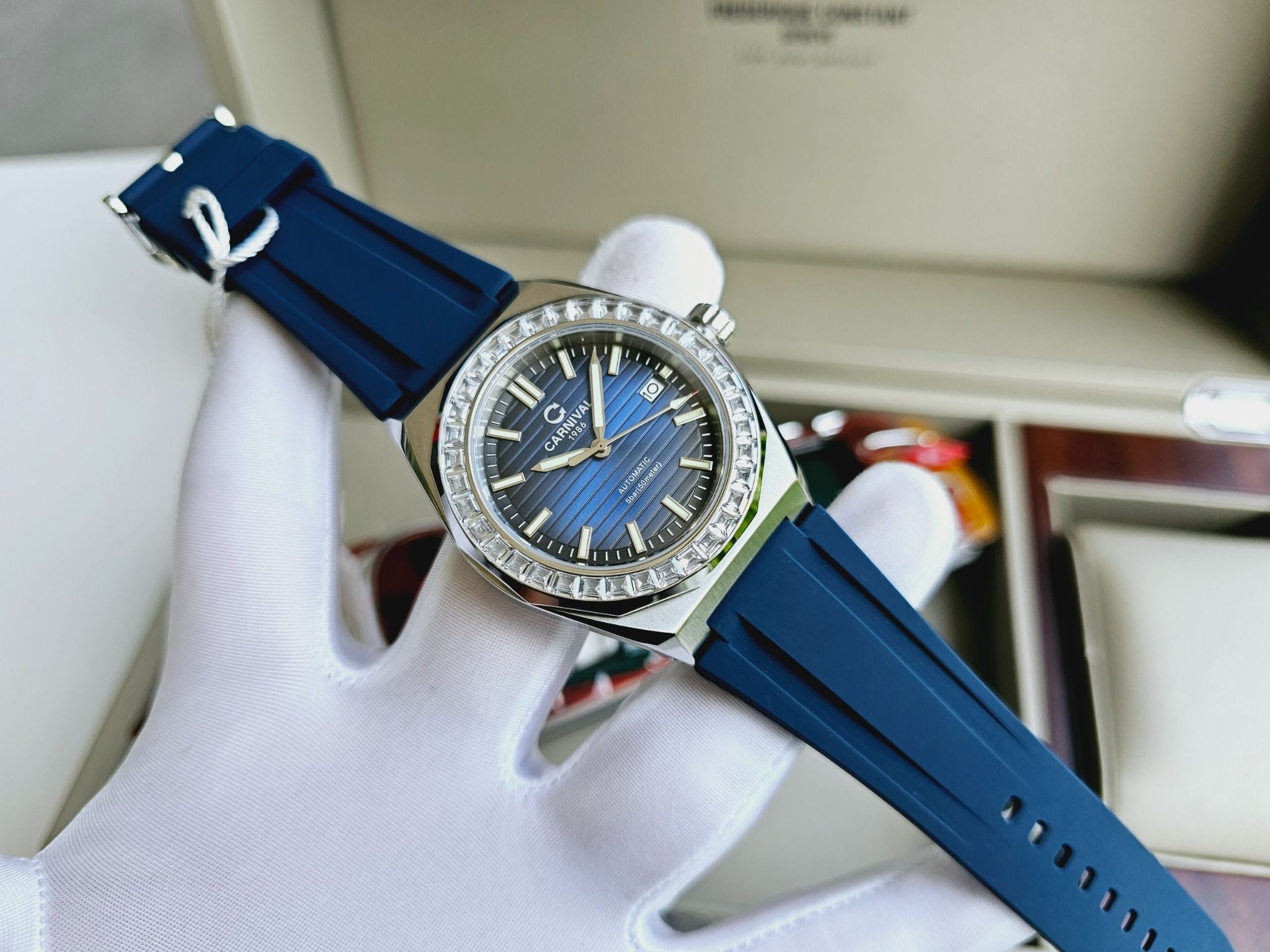 | Đặc Điểm | – Phong cách thiết kế Sport watch. – Lịch ngày (01-31) tại vị trí 3 giờ. – Kim và mặt số phủ dạ quang. – nắp sau xuyên thấu. – Thương Hiệu CARNIVAL 1986 Rõ Nét |