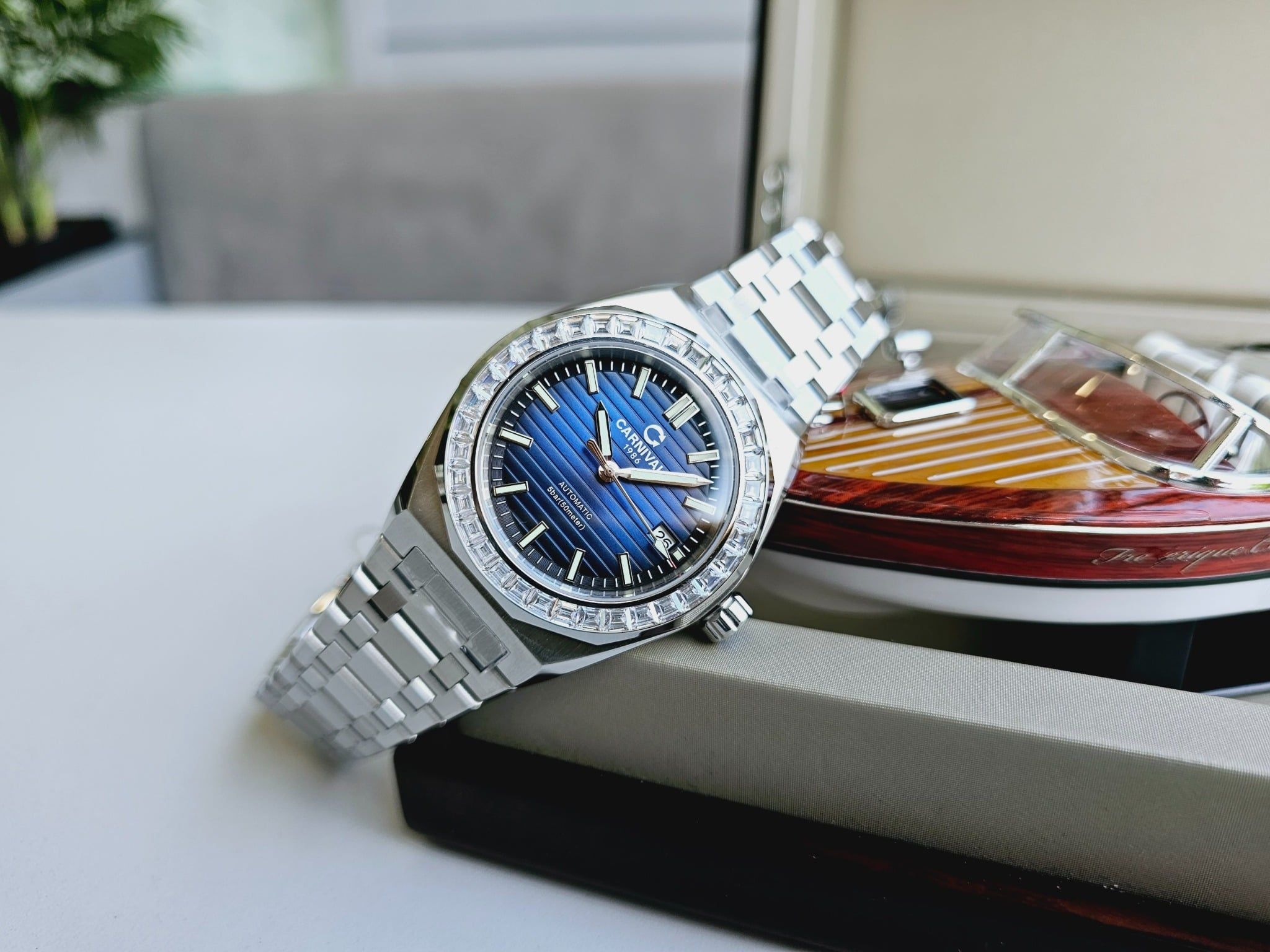 | Đặc Điểm | – Phong cách thiết kế Sport watch. – Lịch ngày (01-31) tại vị trí 3 giờ. – Kim và mặt số phủ dạ quang. – nắp sau xuyên thấu. – Thương Hiệu CARNIVAL 1986 Rõ Nét |