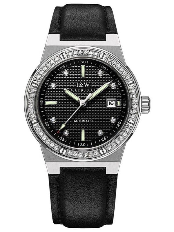 Đặc điểm nổi bật | - Phong cách thiết kế Dress watch. - Viền và mặt số đính đá quý kết hợp số cọc tại vị trí 3, 6, 9, 12 giờ. - Chức năng: Lịch ngày (01-31) tại vị trí 3 giờ. - Kim và mặt số phủ dạ quang. - Case back xuyên thấu. |