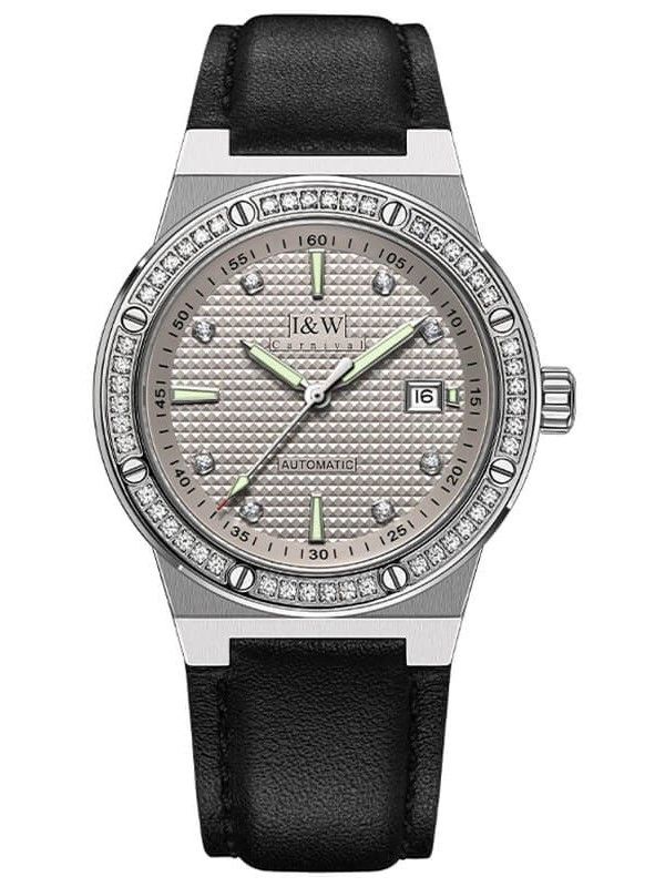 Đặc điểm nổi bật | - Phong cách thiết kế Dress watch. - Viền và mặt số đính đá quý kết hợp số cọc tại vị trí 3, 6, 9, 12 giờ. - Chức năng: Lịch ngày (01-31) tại vị trí 3 giờ. - Kim và mặt số phủ dạ quang. - Case back xuyên thấu. |