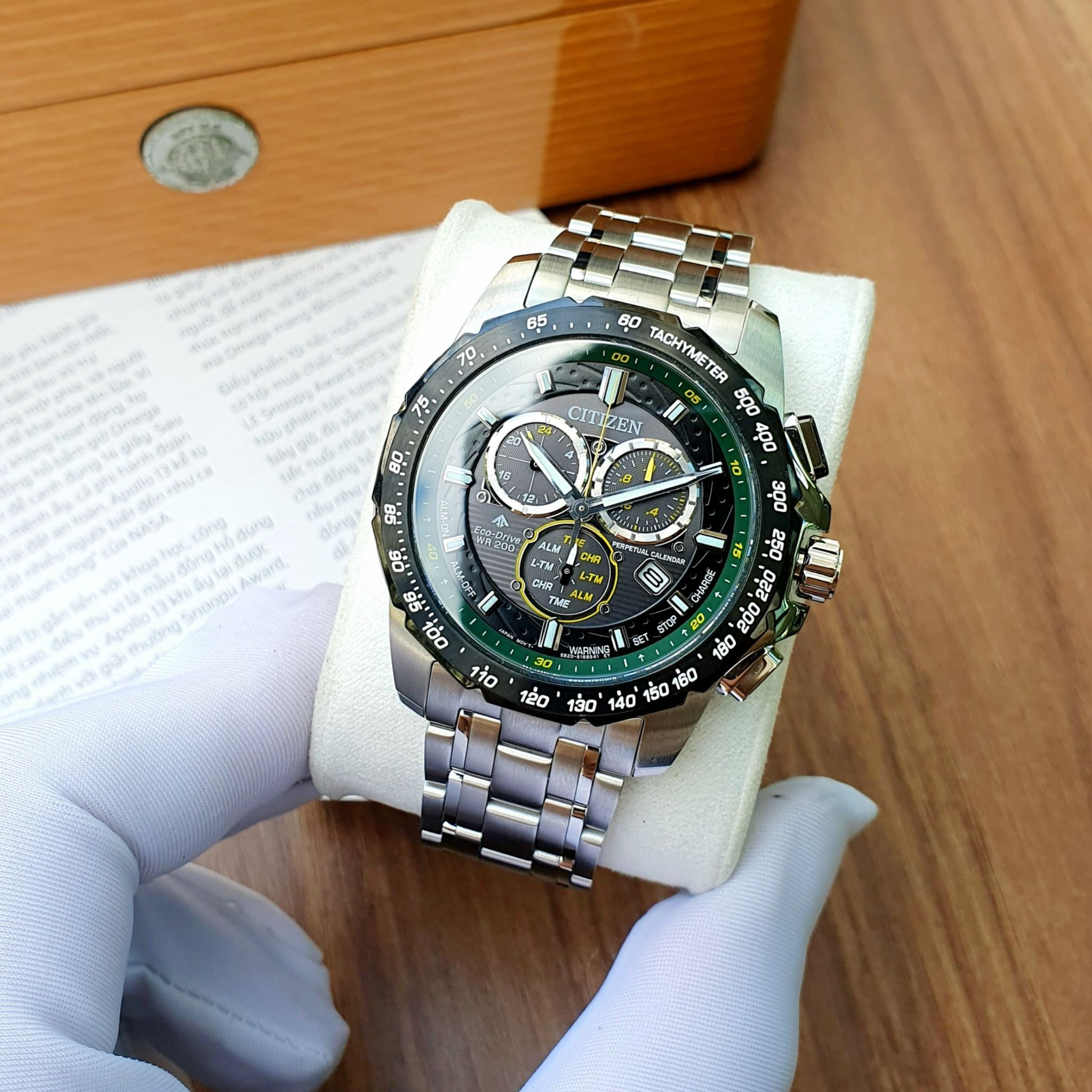| Thông tin khác | Báo thức, Chronograph, Dạ quang, Lịch vạn niên, Perpetual Calendar, Giờ, phút, giây, Tachymeter |