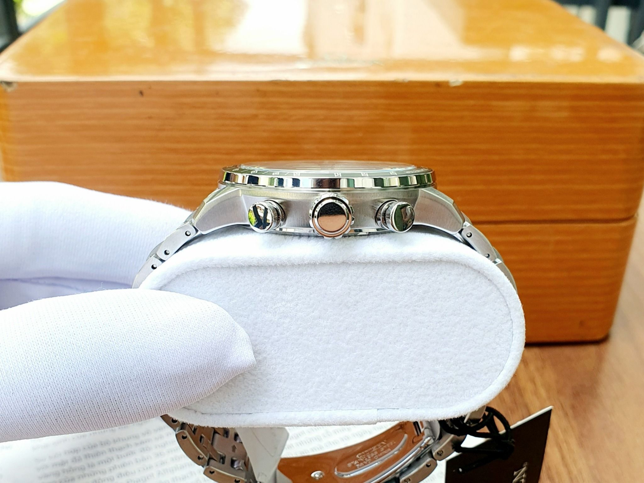 Đồng hồ bị vô tình vào nước bạn nên đến trung tâm càng sớm để xử lý tránh lâu ngày làm hỏng các linh kiện máy, mặt số và kim.