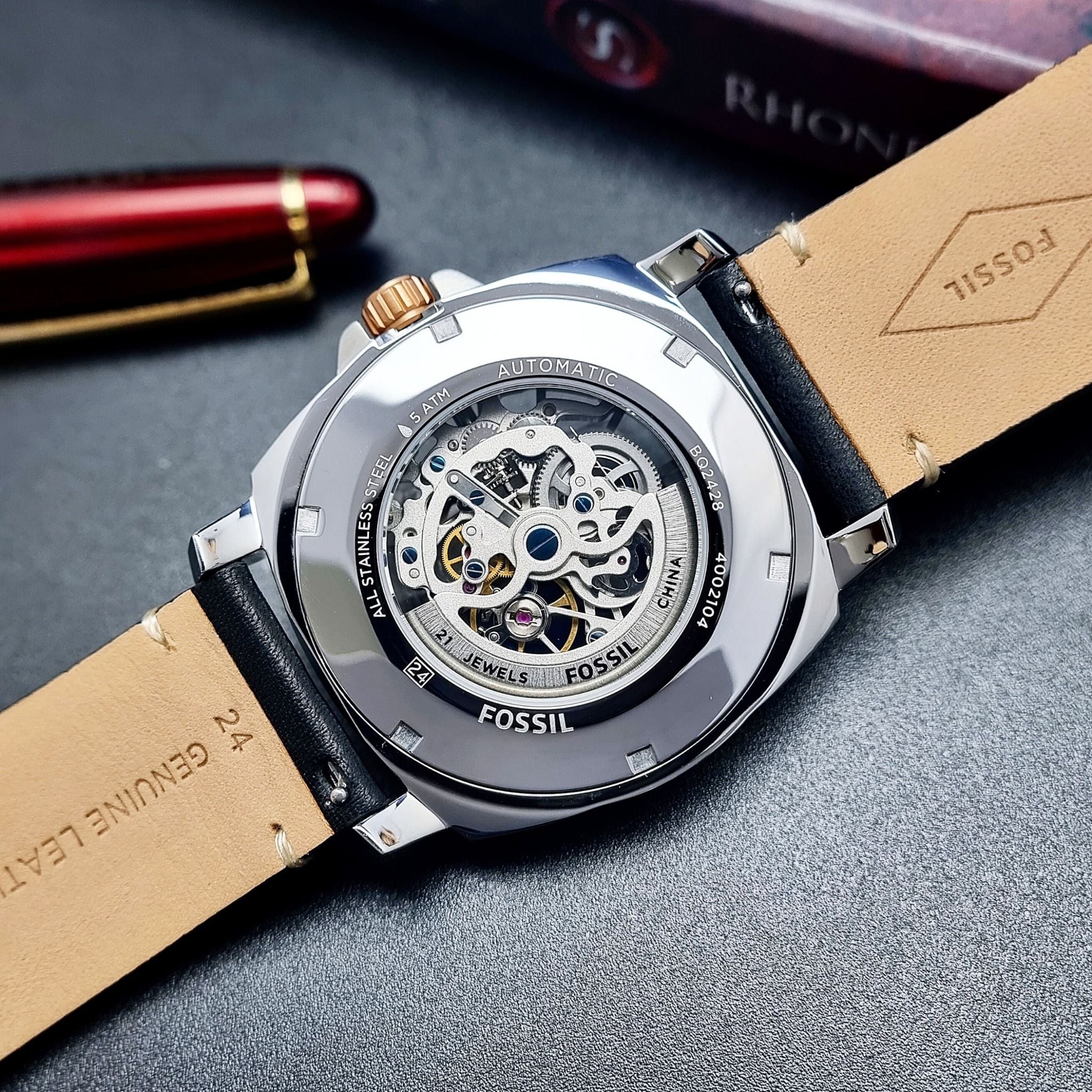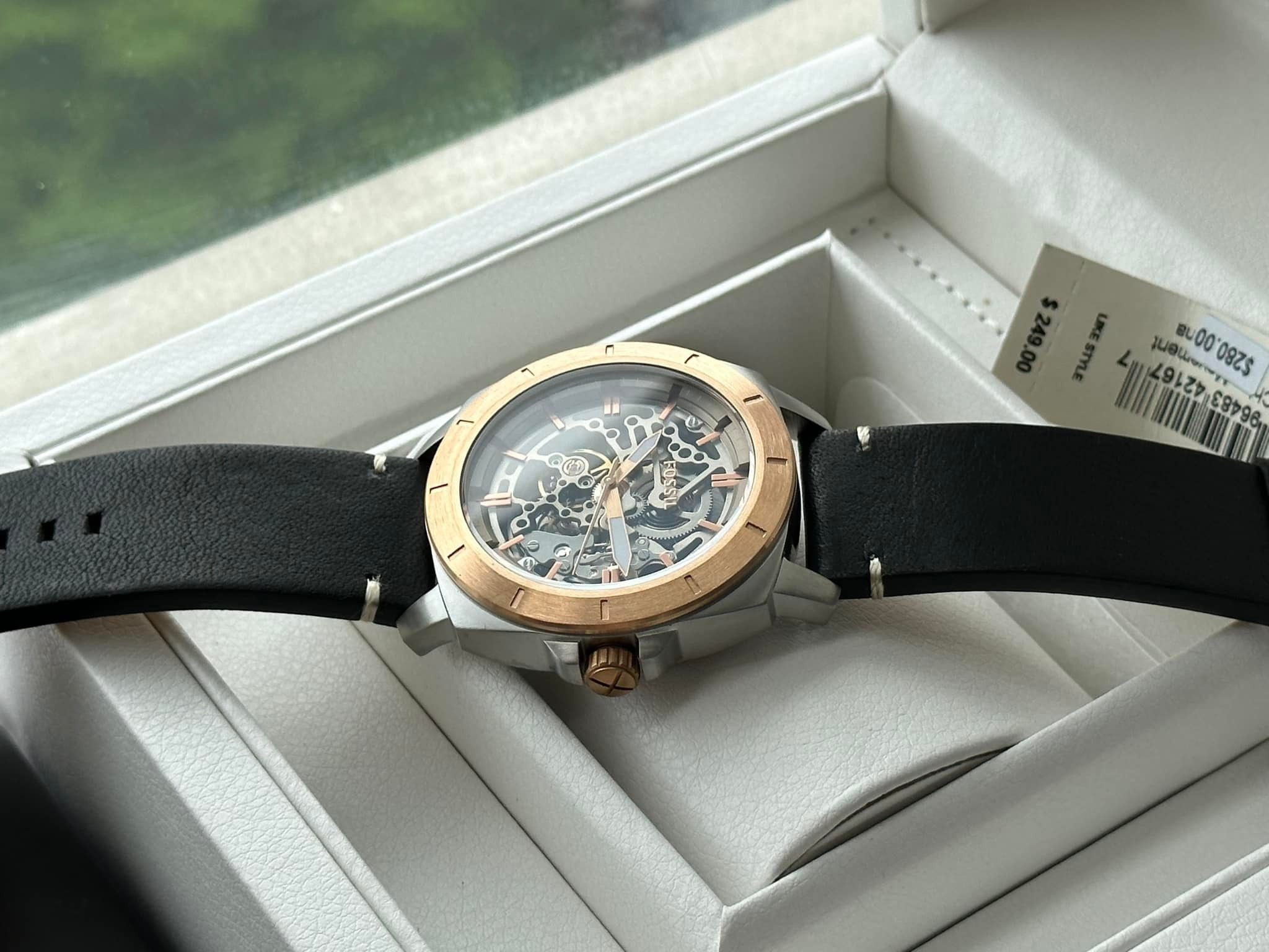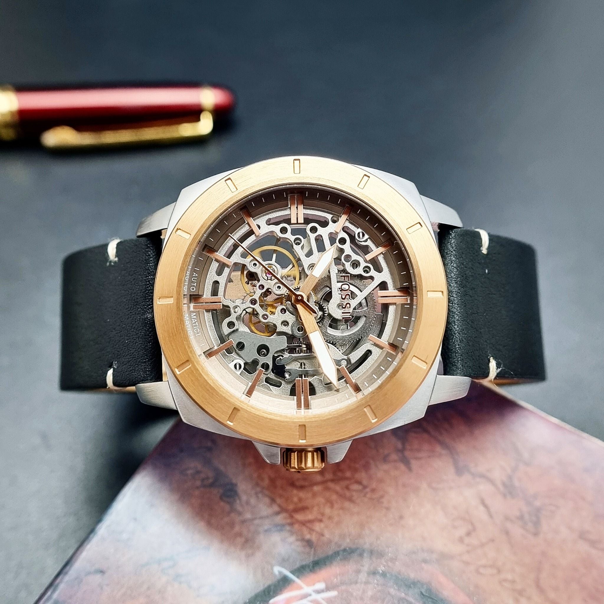 Fossil BQ2428 Automatic Dây Da Đen Vỏ Mạ Rose