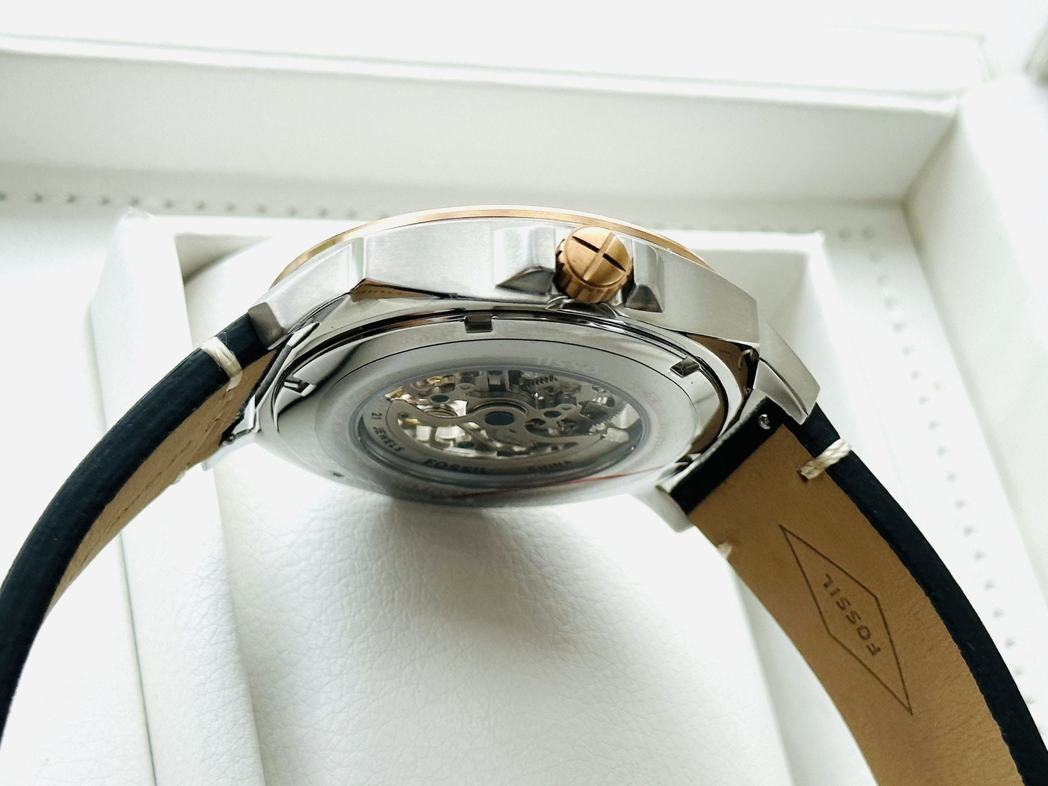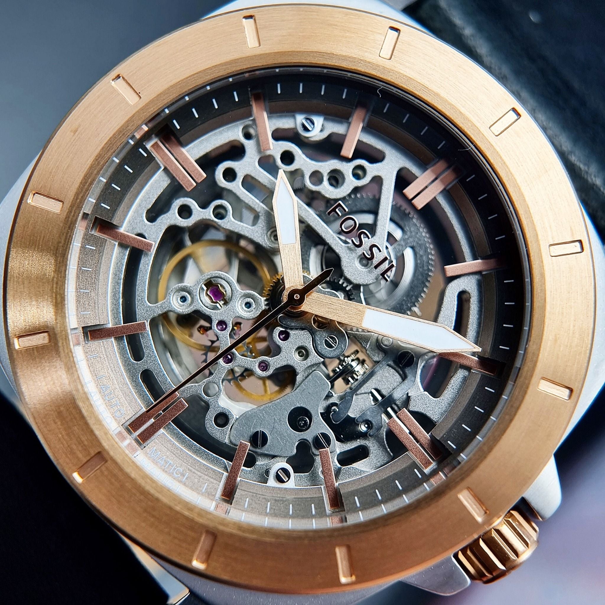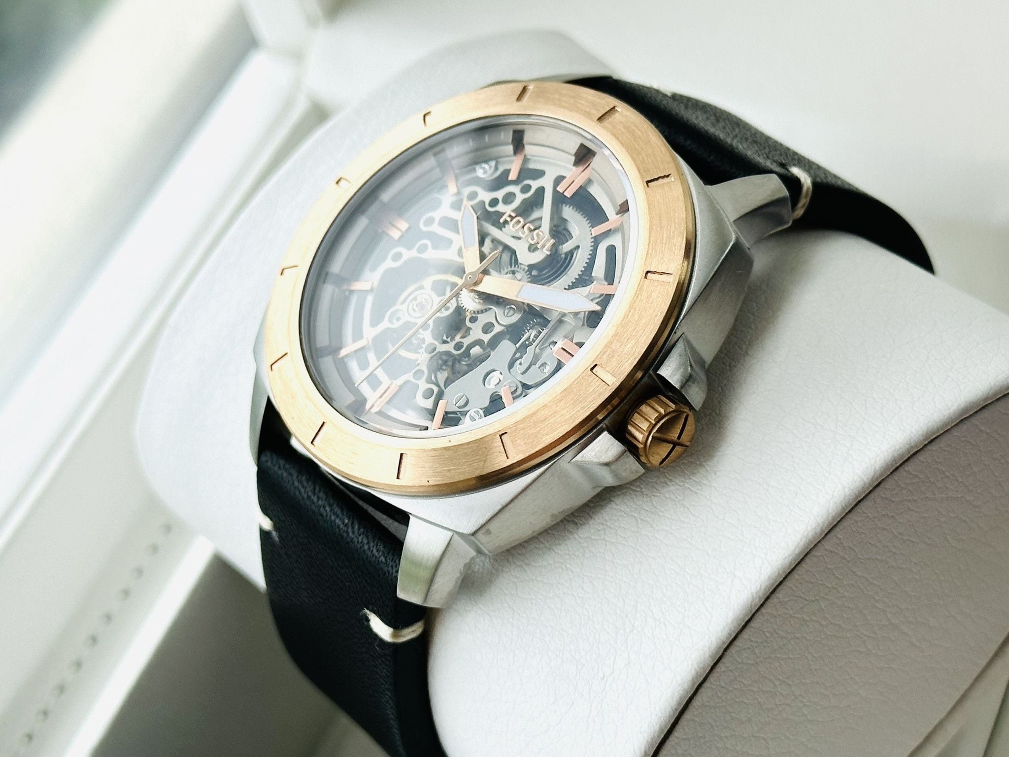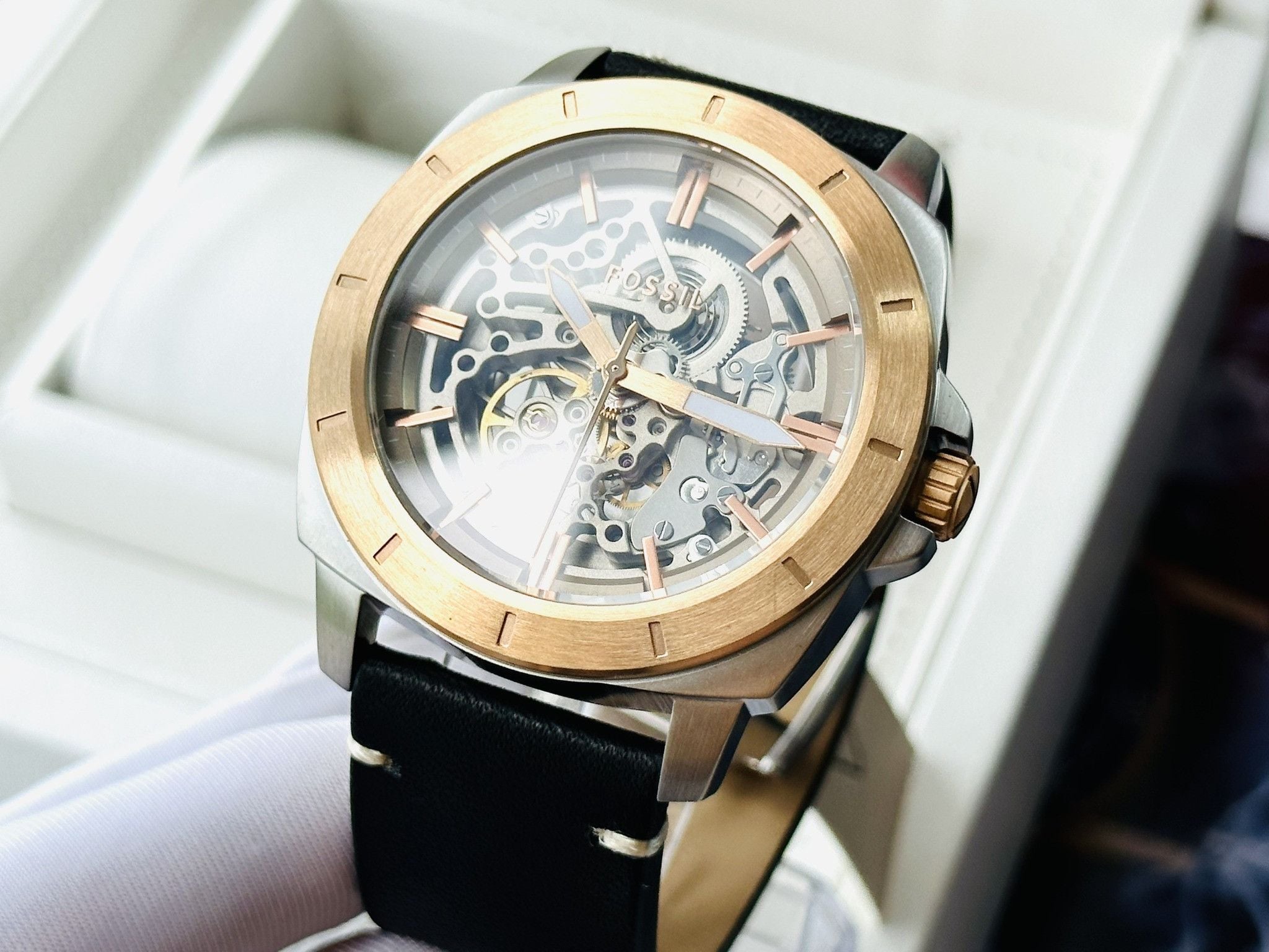 Fossil BQ2428 Automatic Dây Da Đen Vỏ Mạ Rose