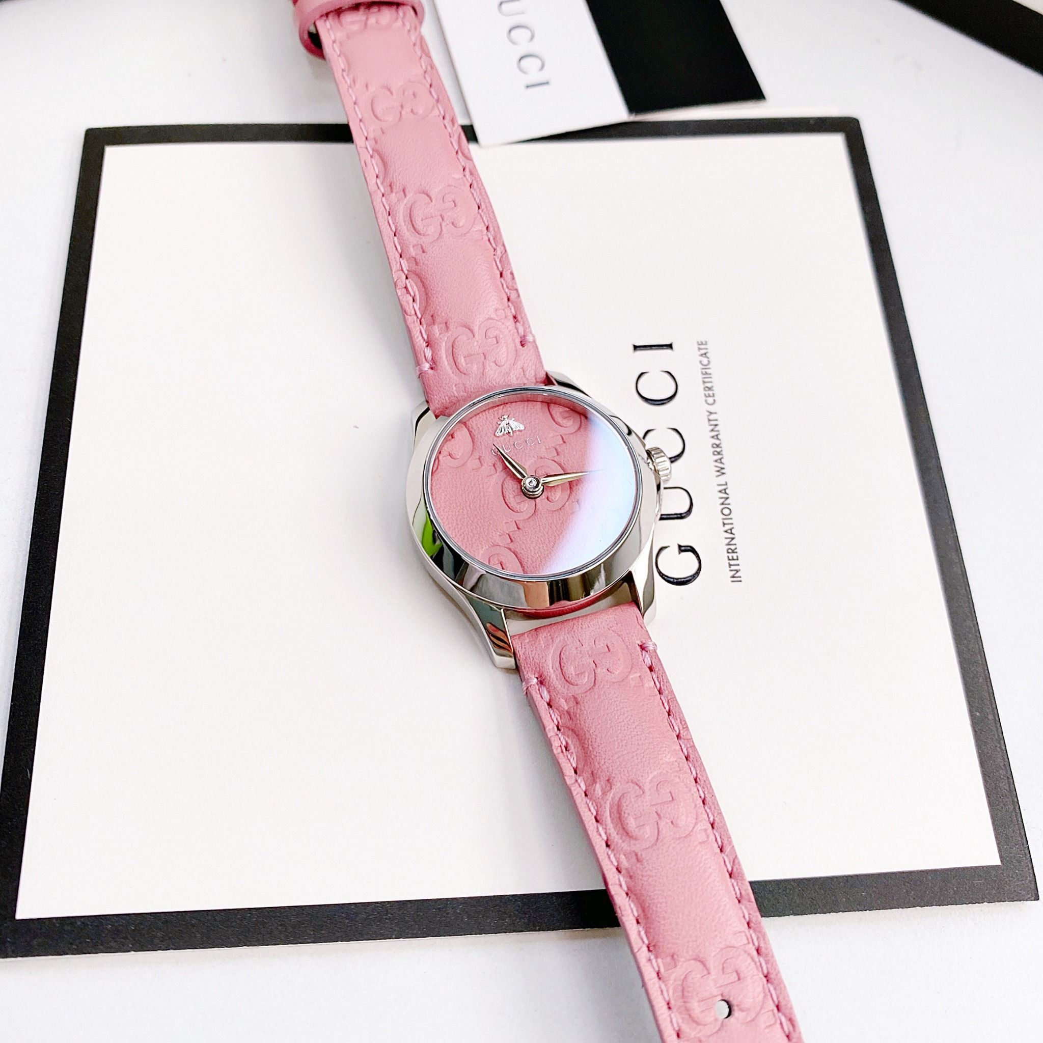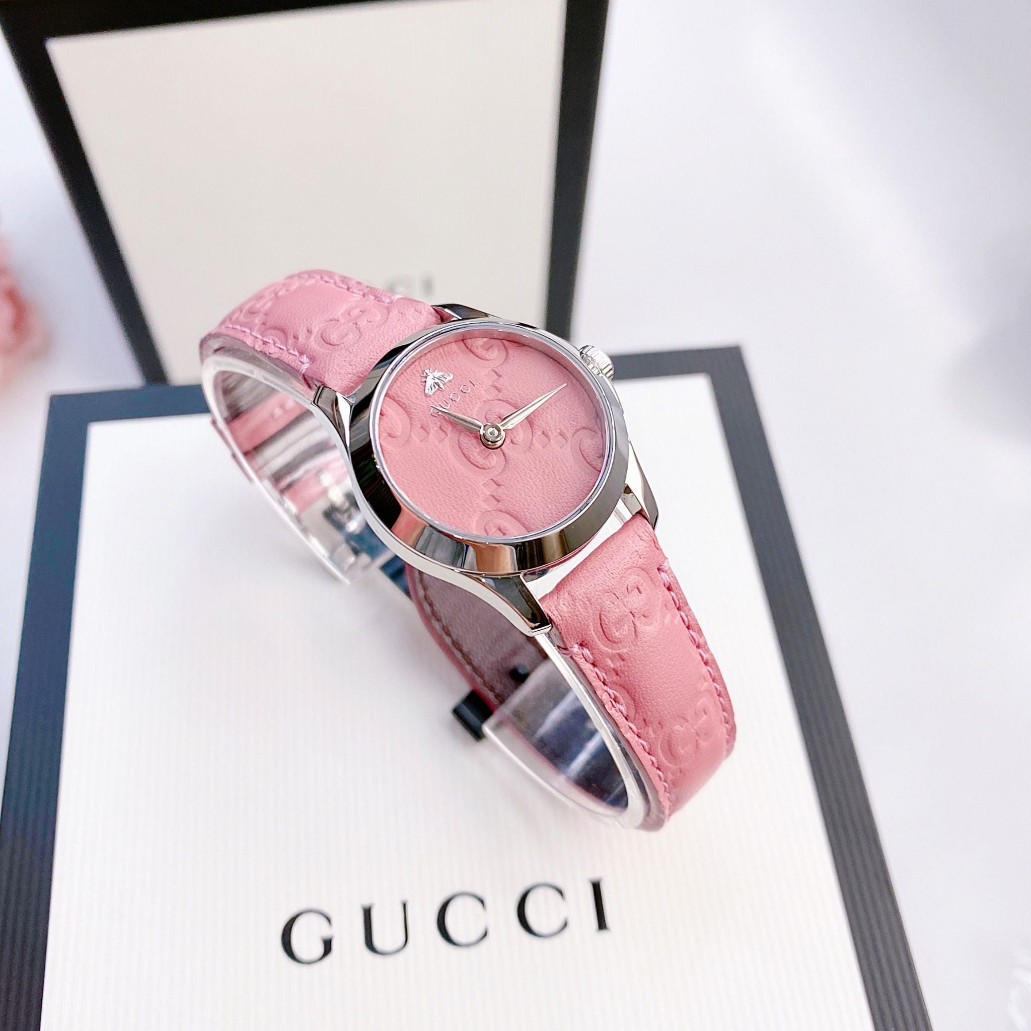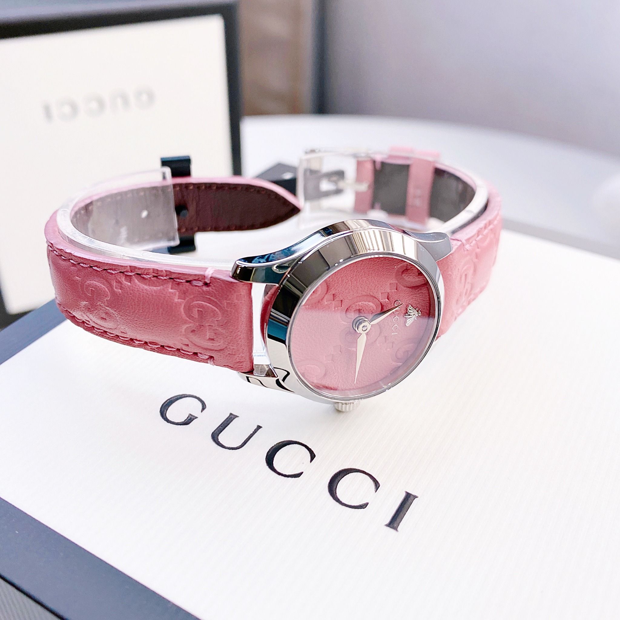 • Mặt màu hồng Candy Pink dập vân GG nổi