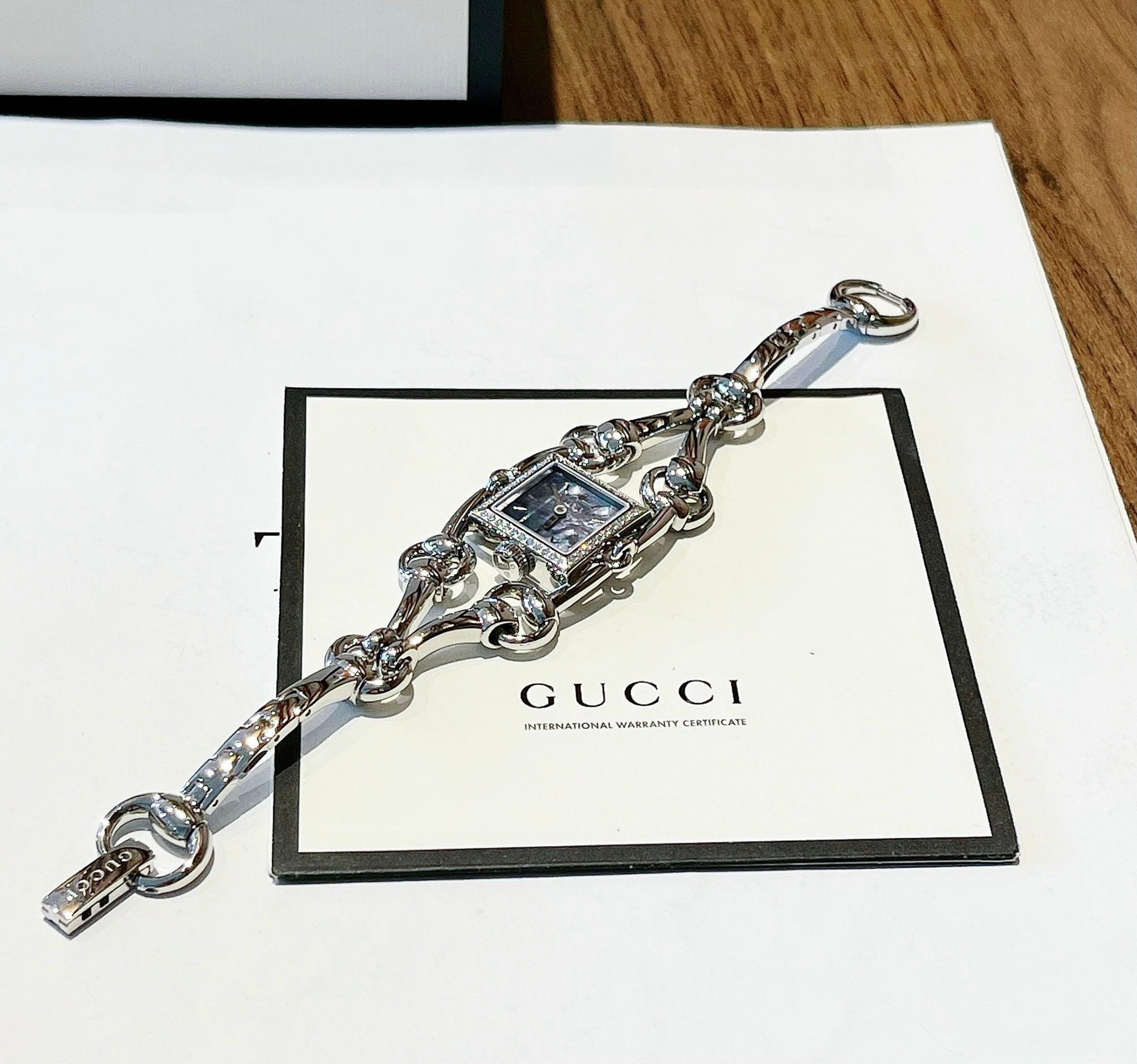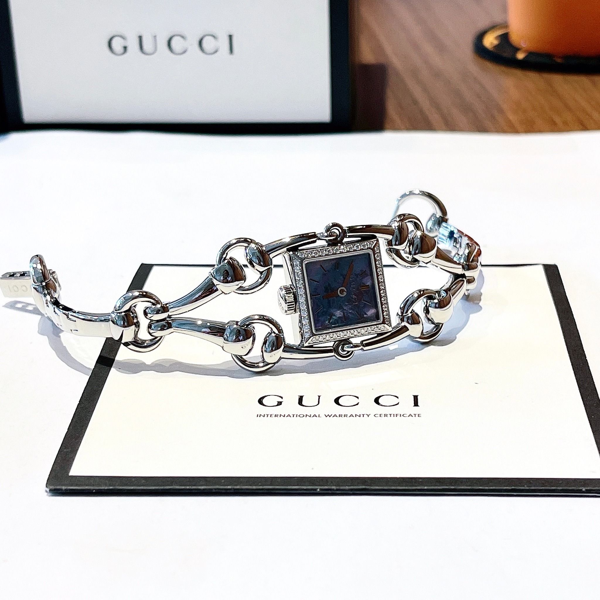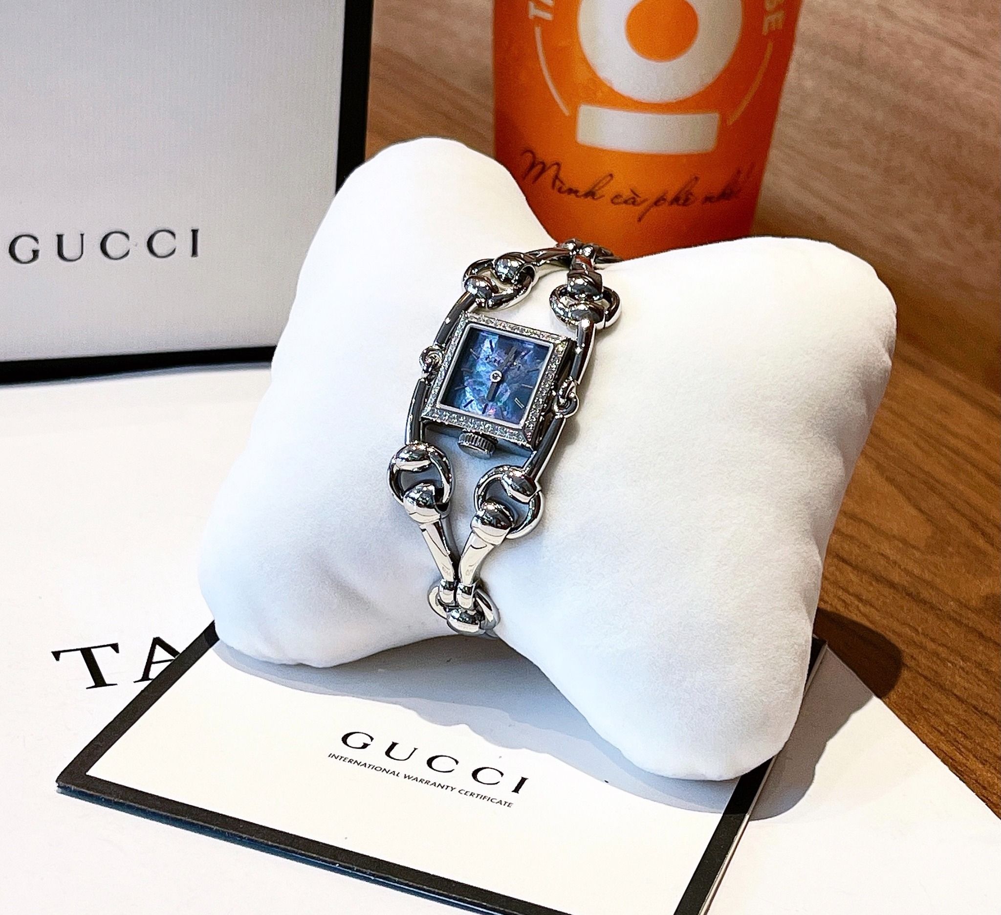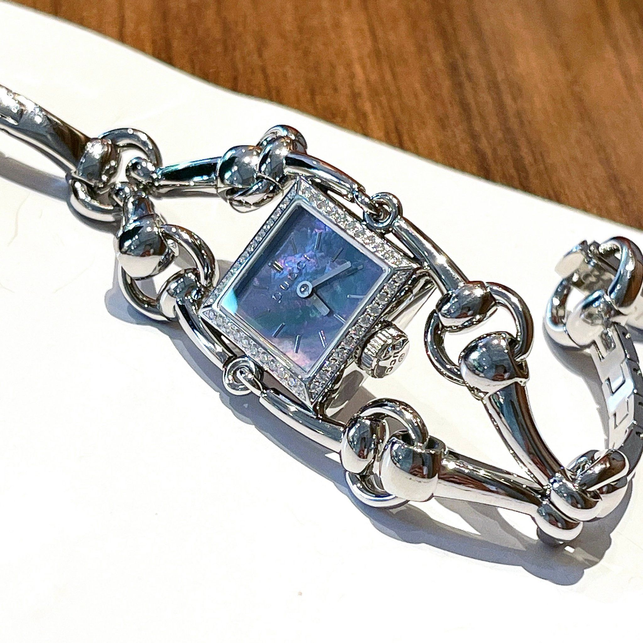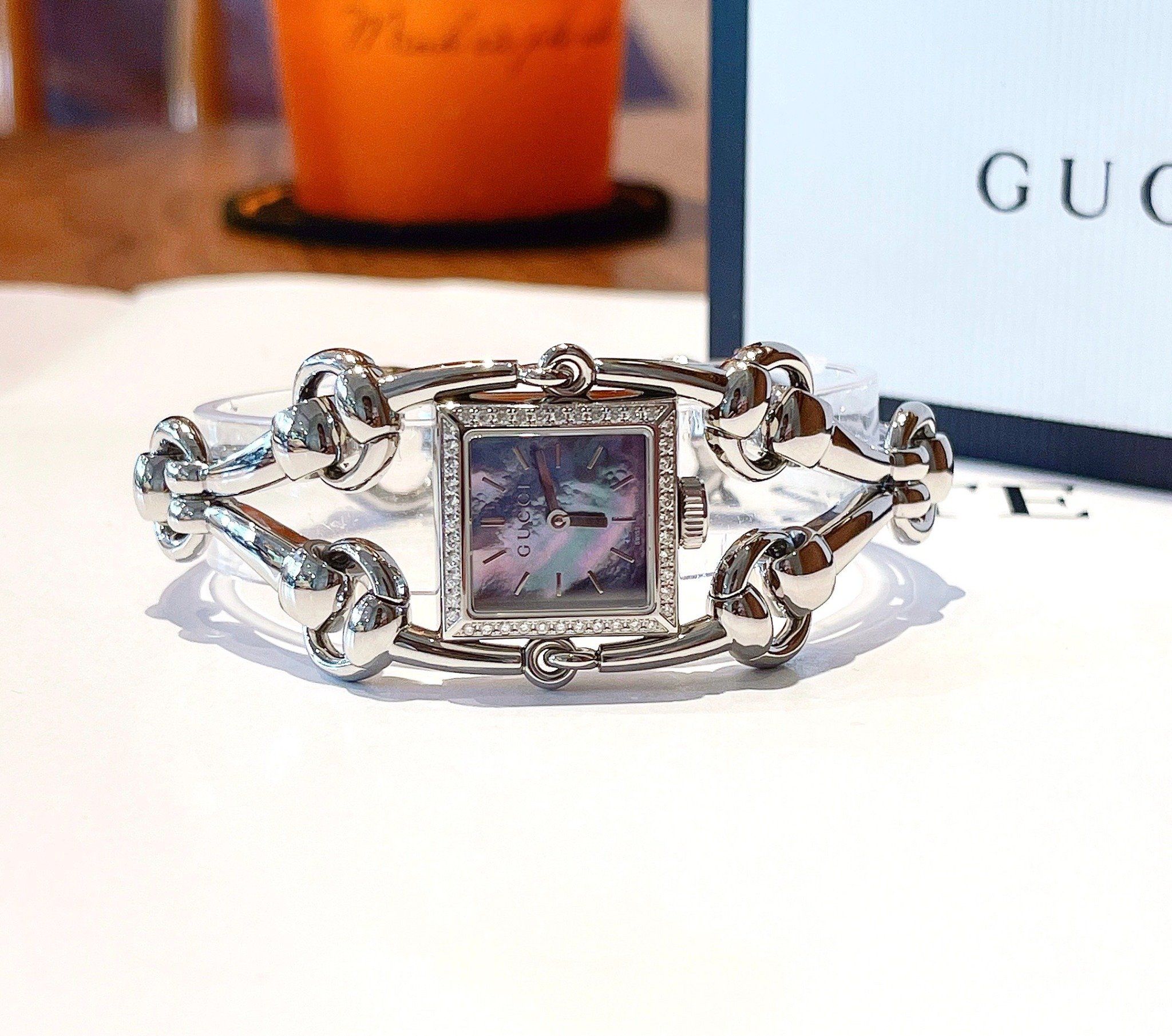 Gucci Signoria Grande Diamond Blue Mother Of Pearl Dial Silver Tone YA116513 25x25mm - Đồng Hồ Nữ