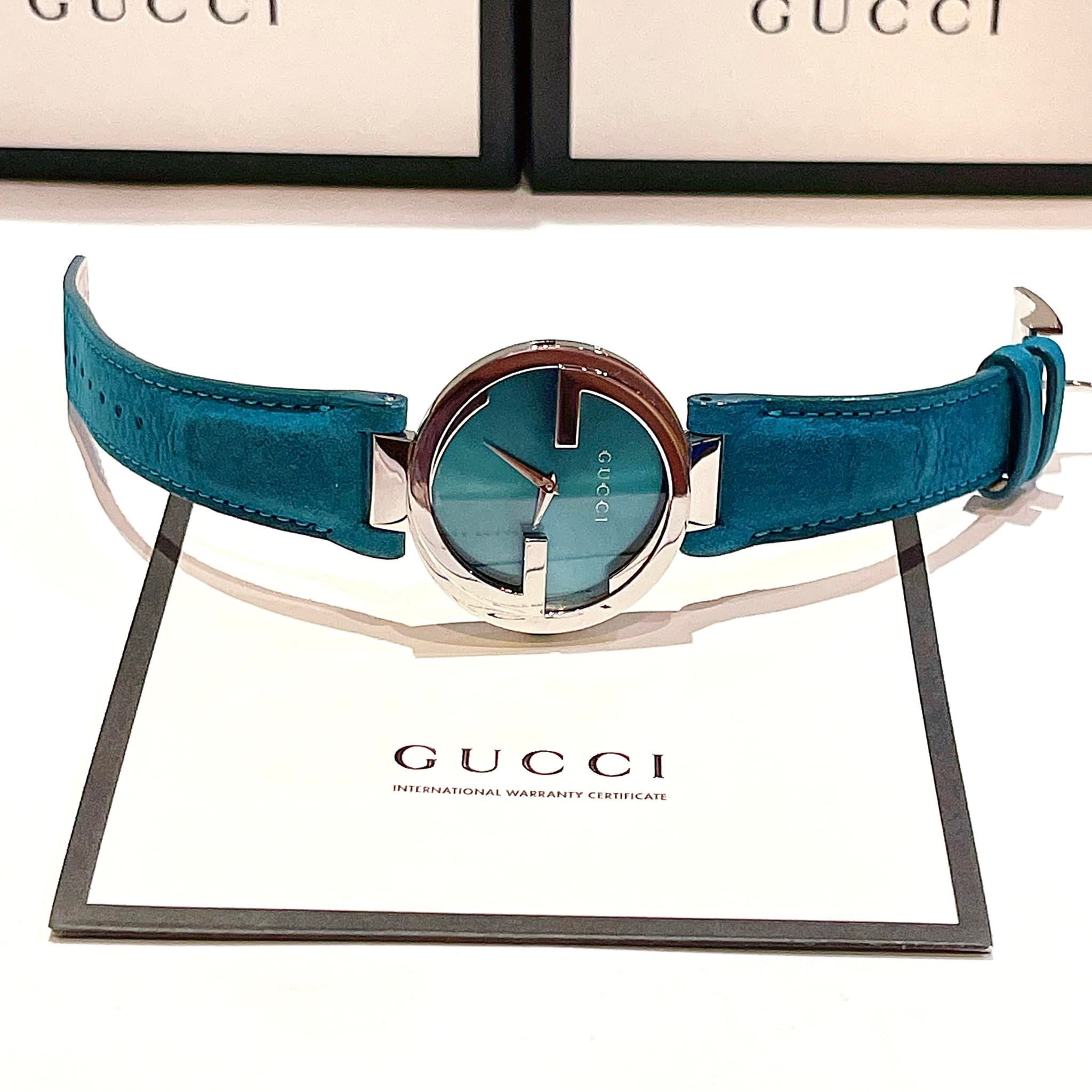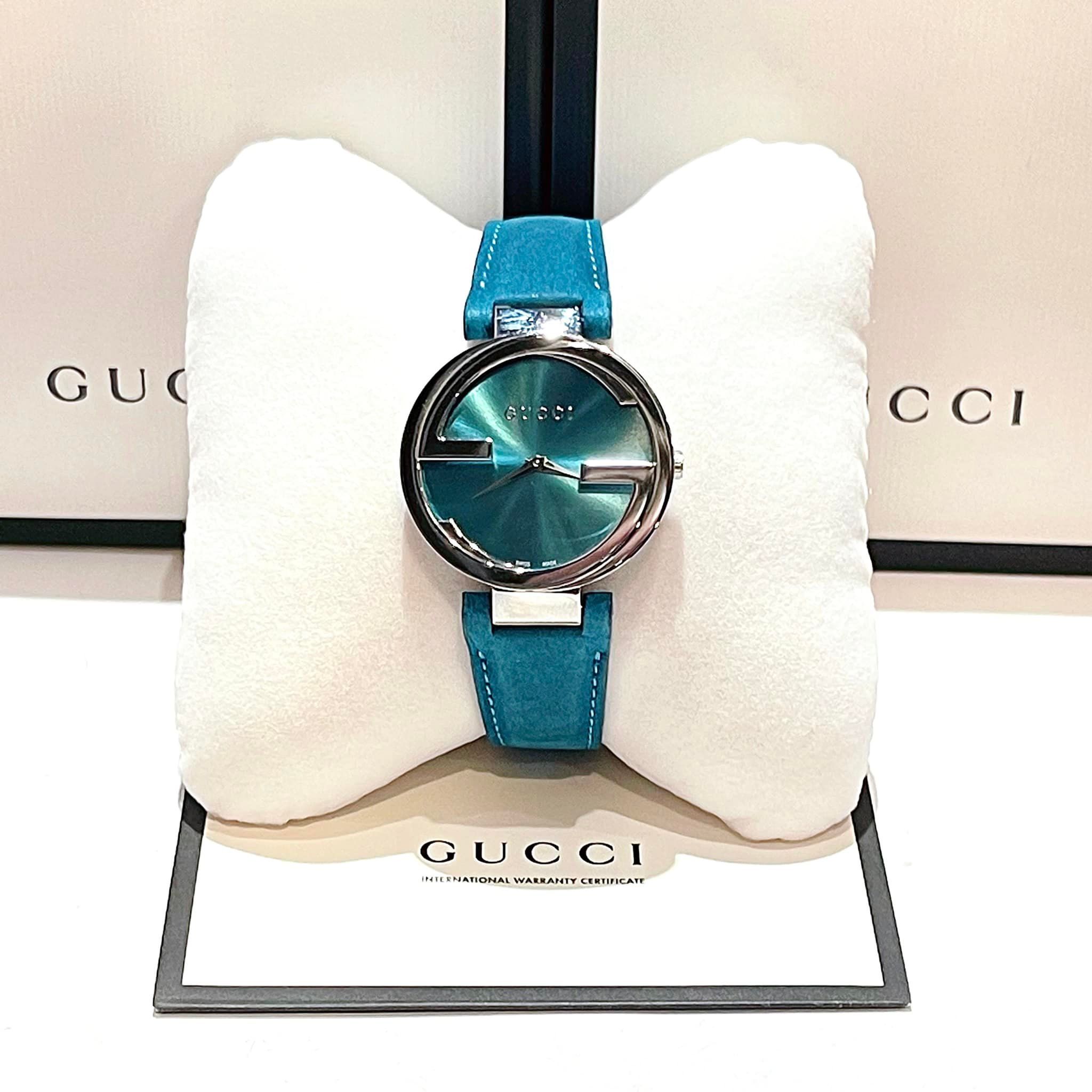 GUCCI YA133315 Interlocking G Blue Dial Leather Ladies Watch 37mm - Đồng Hồ Nữ
