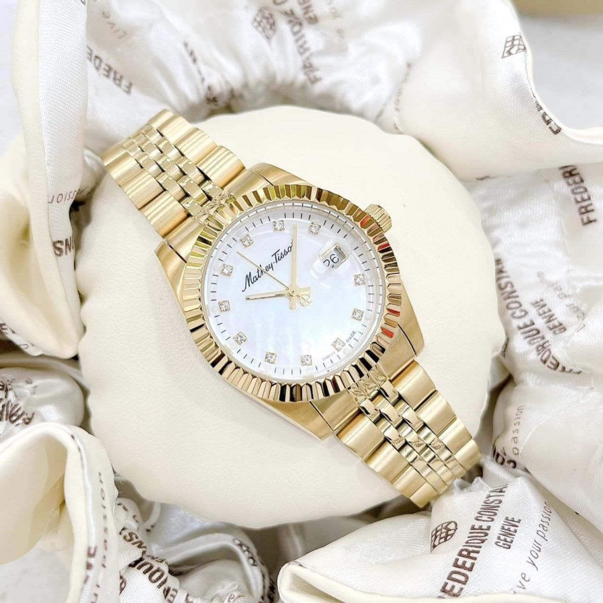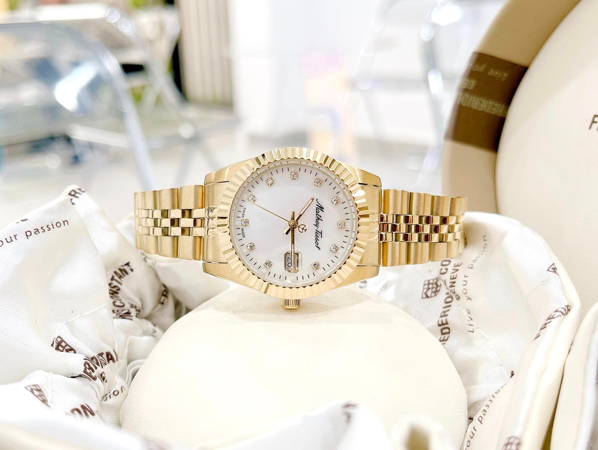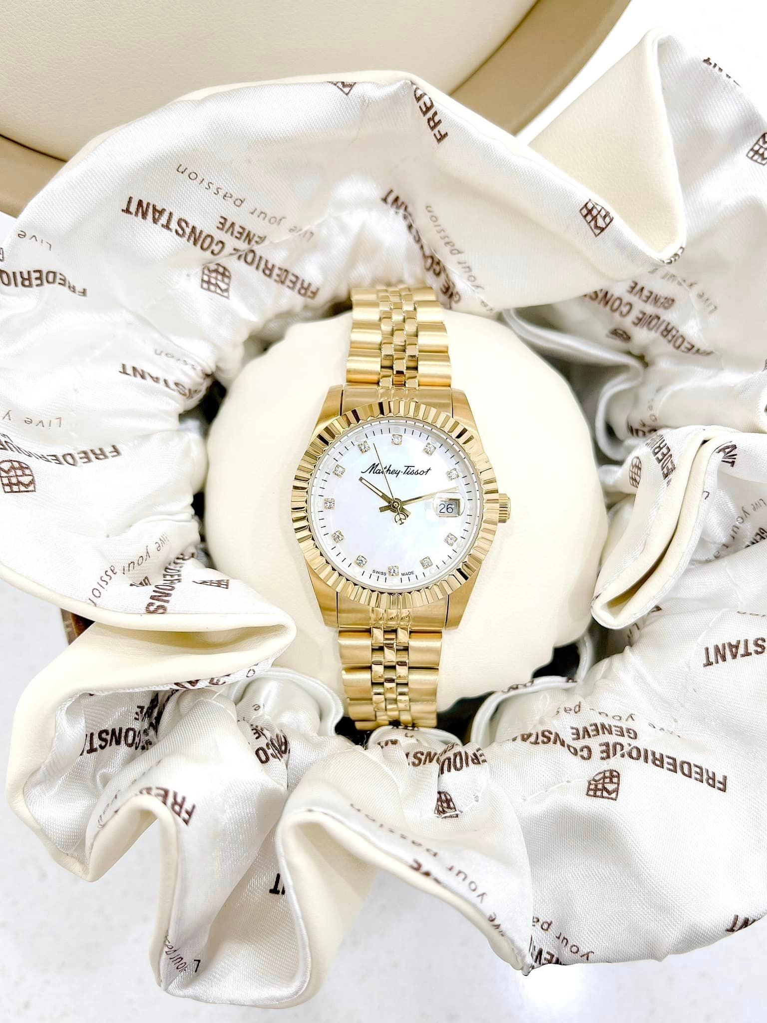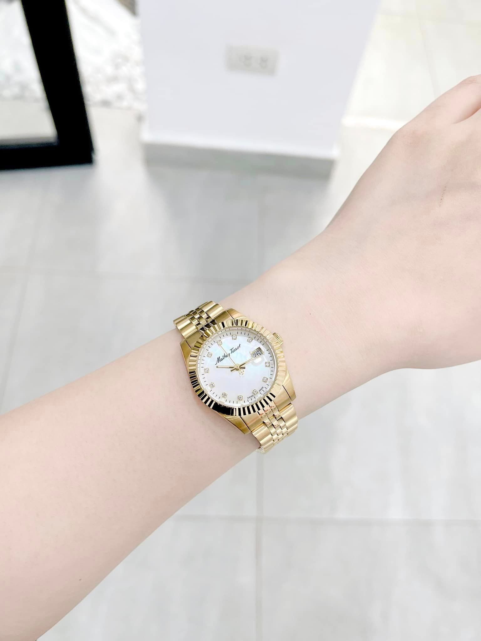 A - Mathey Tissot Quartz D910PI Mathy III MOP White Dial 32mm - Đồng Hồ Nữ