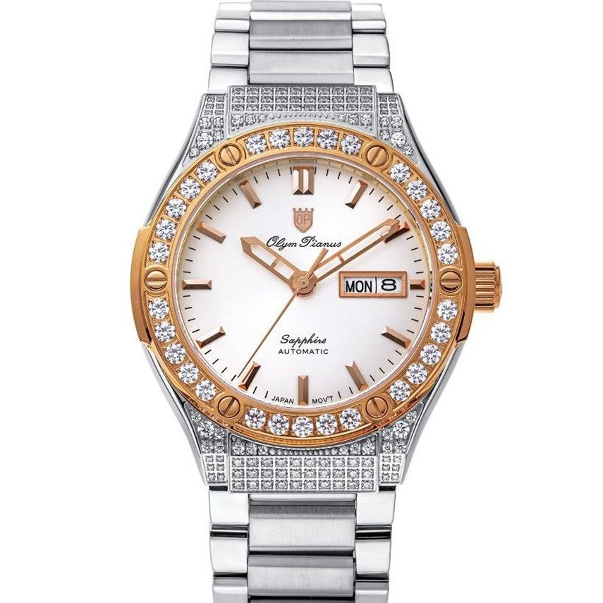 -Kính sapphire nguyên khối + bezel đính đá cực chắc chắn và sáng giúp tổng thể thiết kế trở lên Sang trọng - Đẳng cấp.