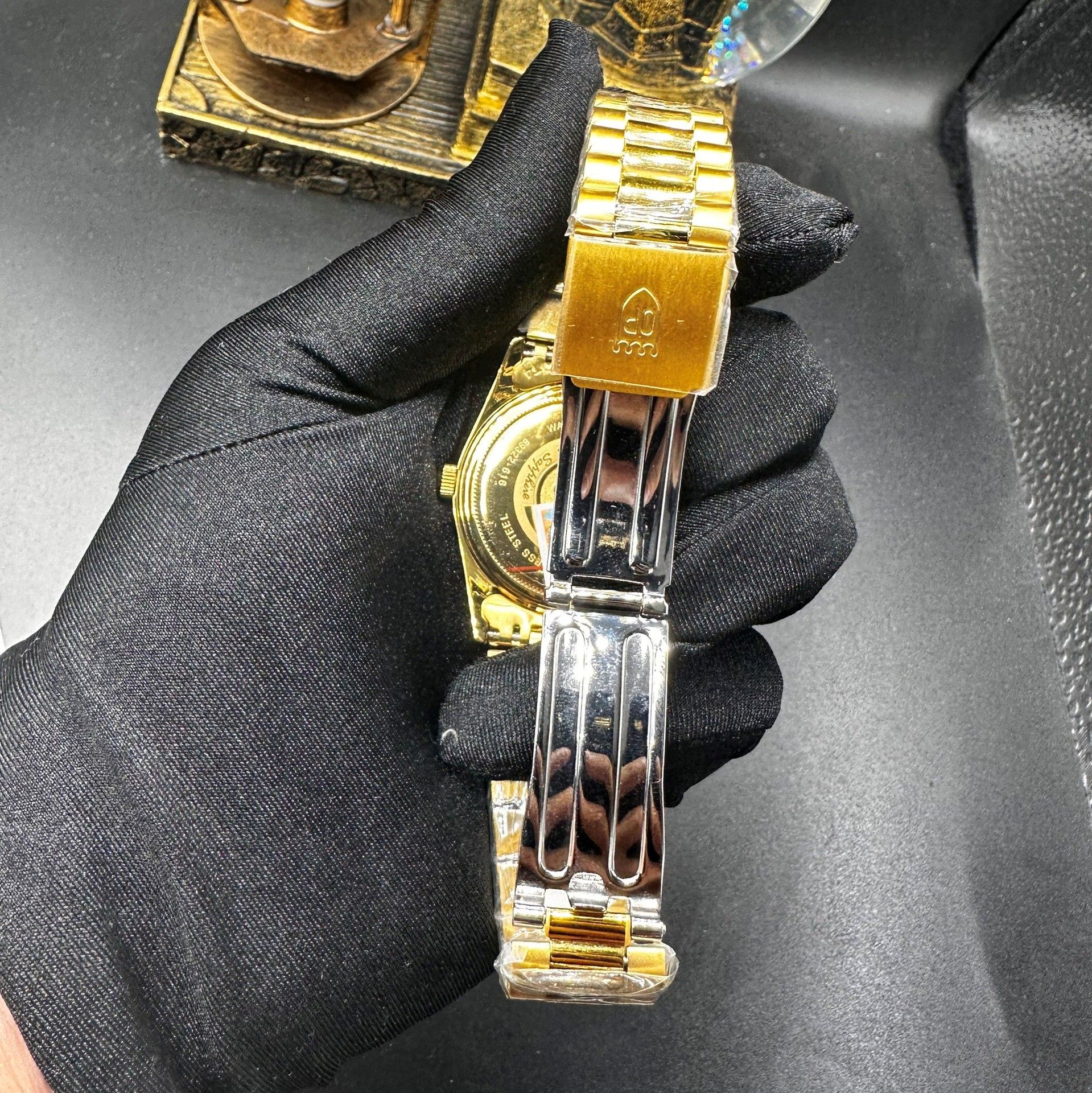 4. Đồng hồ mạ vàng thì tránh tiếp xúc với nước muối và hóa chất ngoài ra cần thường xuyên vệ sinh để tránh bị ố.