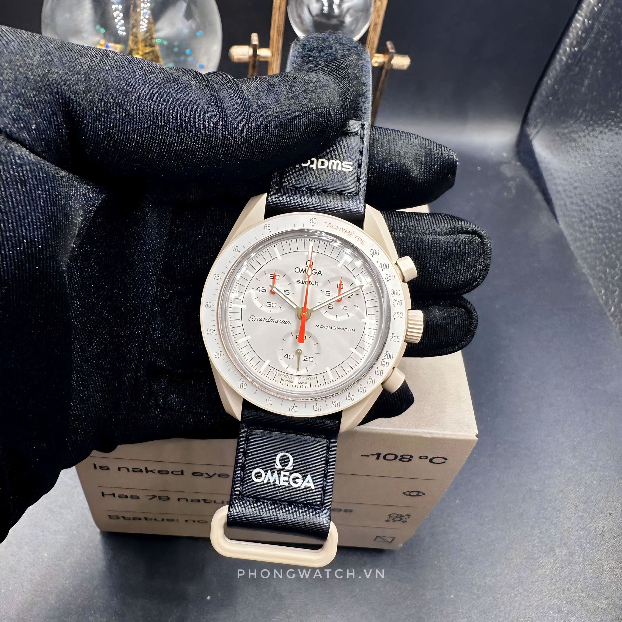 Phiên bản Omega MoonSwatch Mission to the Moon (mẫu biểu tượng nhất, nguyên bản nhất của Moonwatch – và cũng được săn đón nhiều nhất)