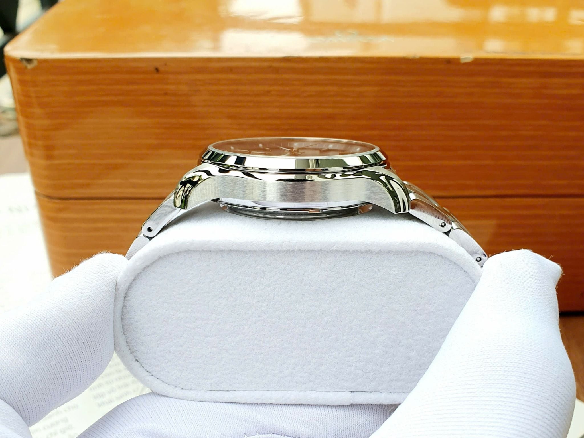 Đồng hồ bị vô tình vào nước bạn nên đến trung tâm càng sớm để xử lý tránh lâu ngày làm hỏng các linh kiện máy, mặt số và kim.