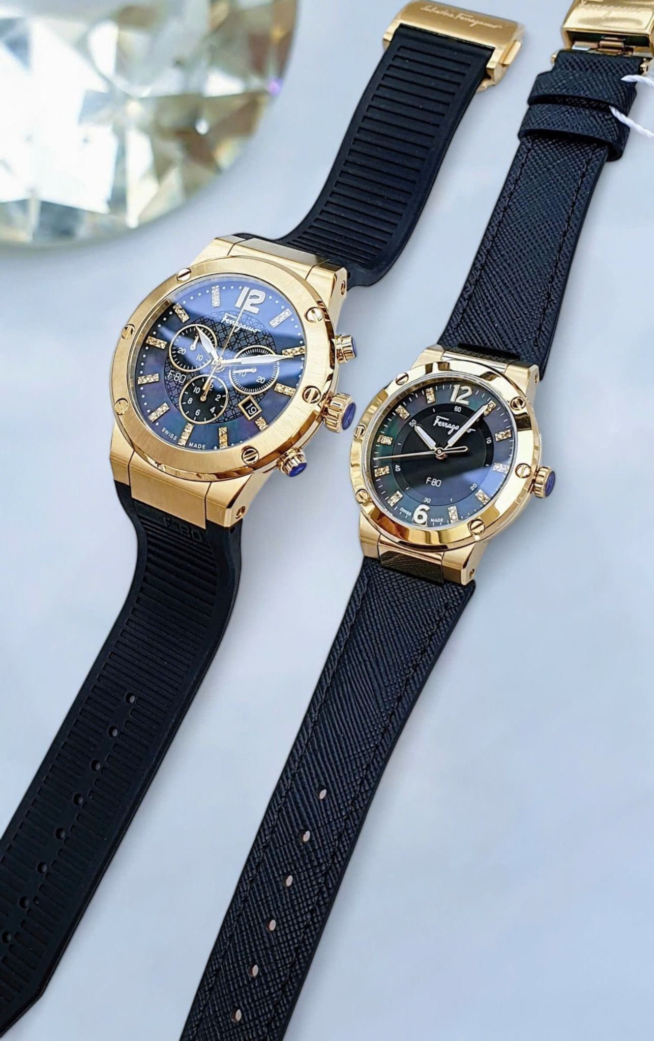 Salvatore Ferragamo F-80 44mm /33mm Diamond - Đồng Hồ Cặp
