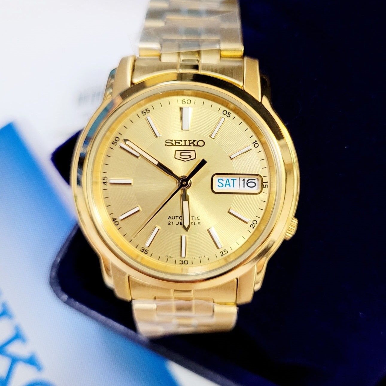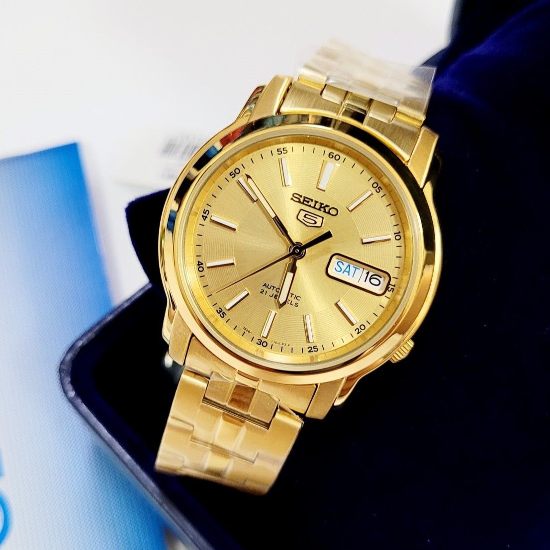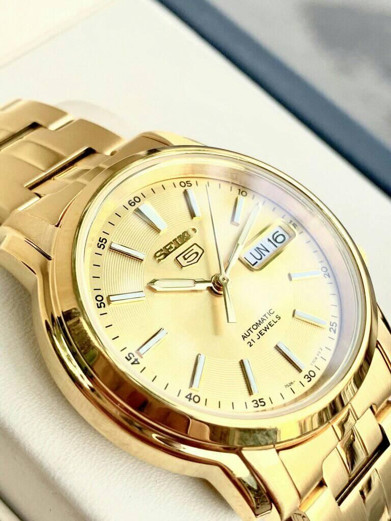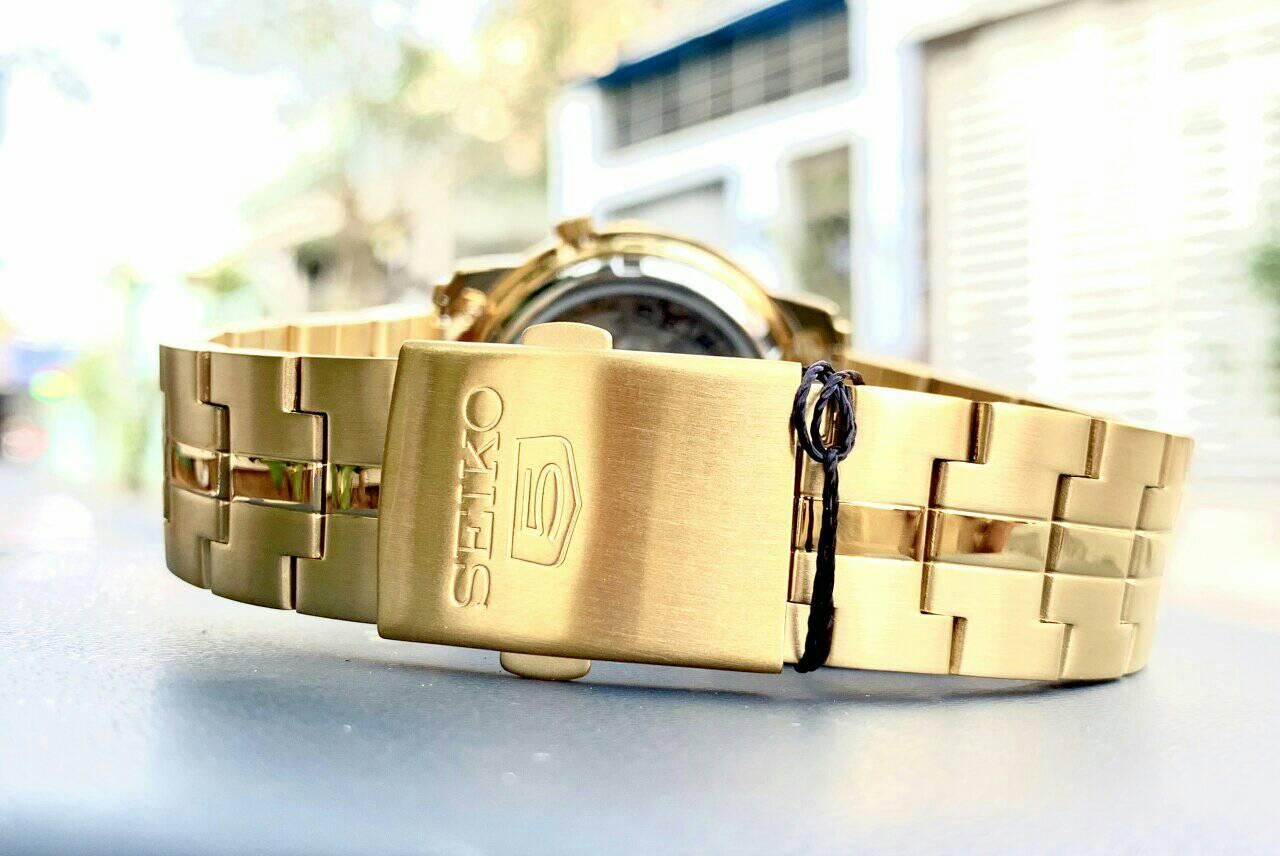 - Kiểu khóa bấm gập 3 nấc truyền thống với biểu tượng Seiko 5 quen thuộc.