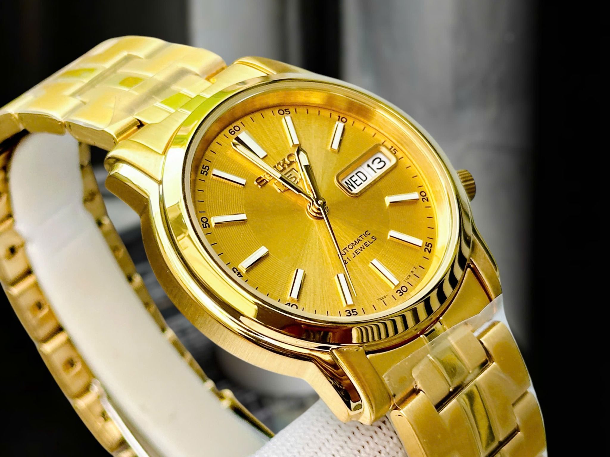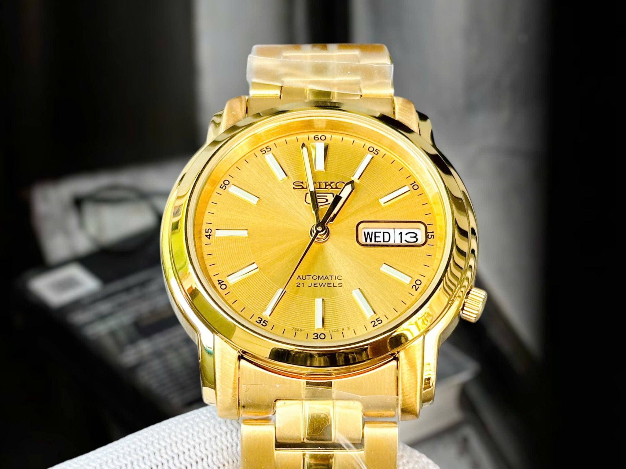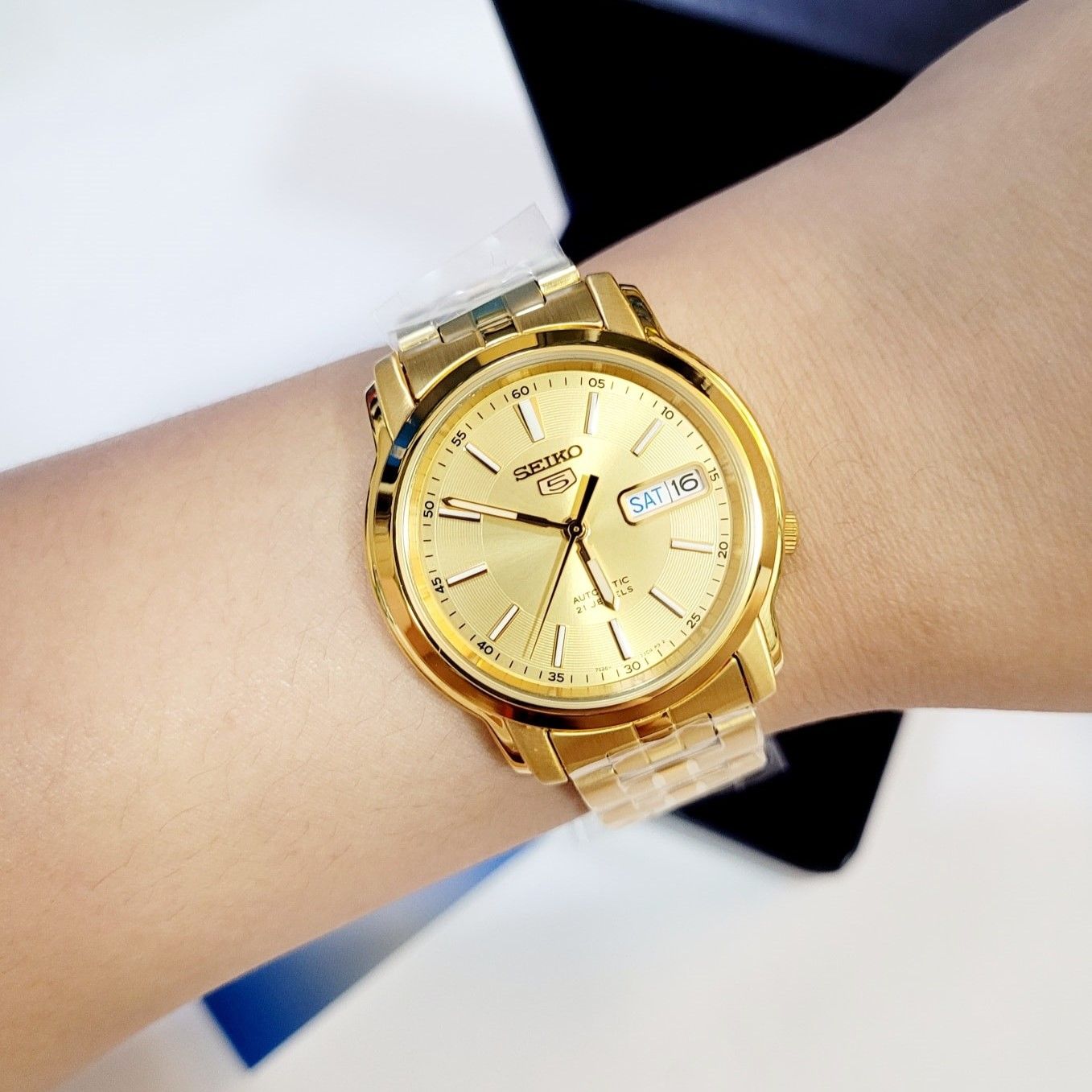 - Kiểu khóa bấm gập 3 nấc truyền thống với biểu tượng Seiko 5 quen thuộc.