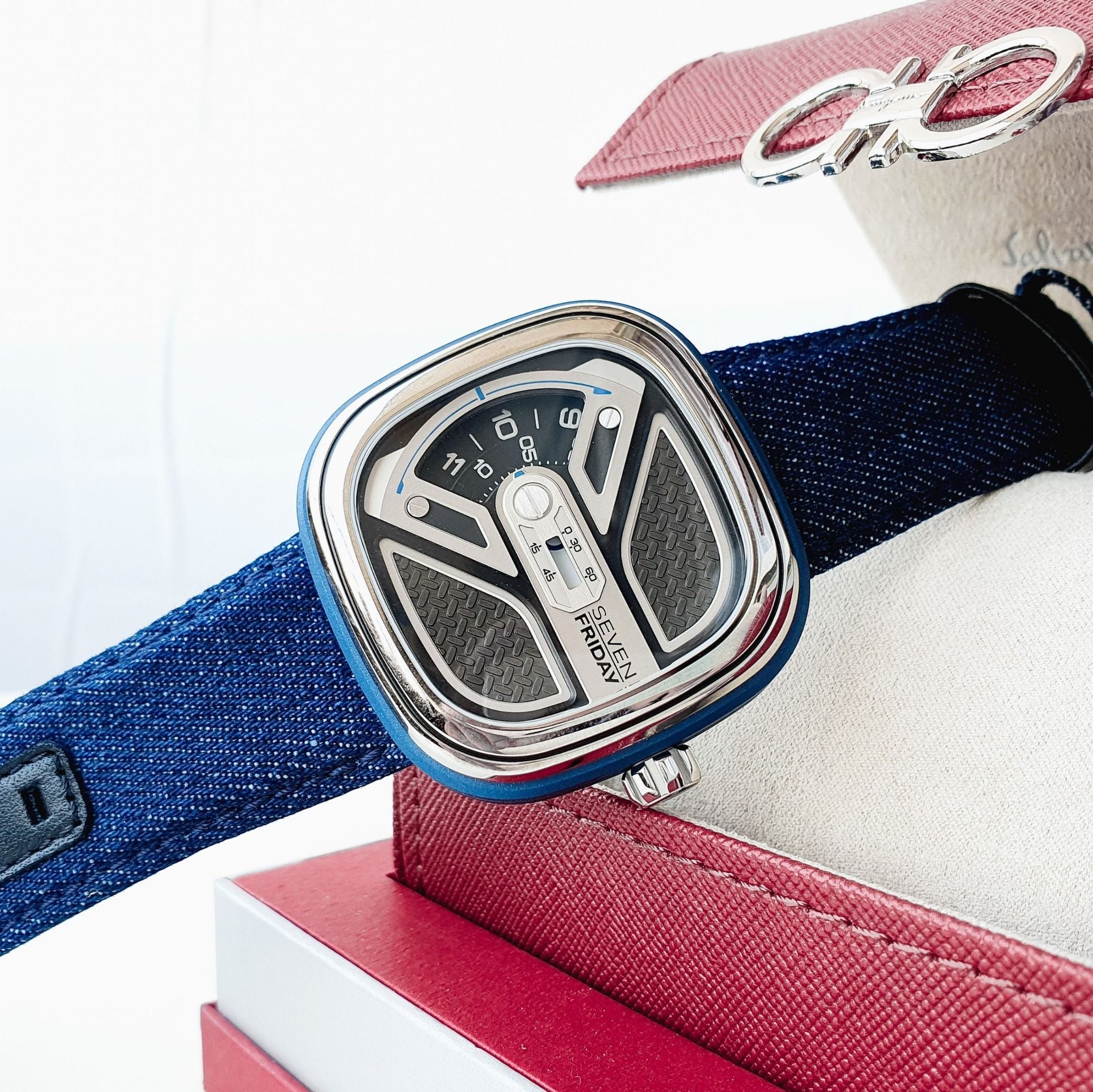 Sự tương phản đẹp mắt giữa bộ dây đeo Denim lần đầu tiên xuất hiện trong gia đình cùng chất liệu thép không gỉ sáng bóng, cùng với đó kết hợp màu sắc Monochrome-Blue tuyệt đẹp, bộ sưu tập M-Series tiếp tục chào đón một thành viên mới với nguồn cảm hứng đầy thú vị mang tên M1B/01 “Urban Explorer”.
