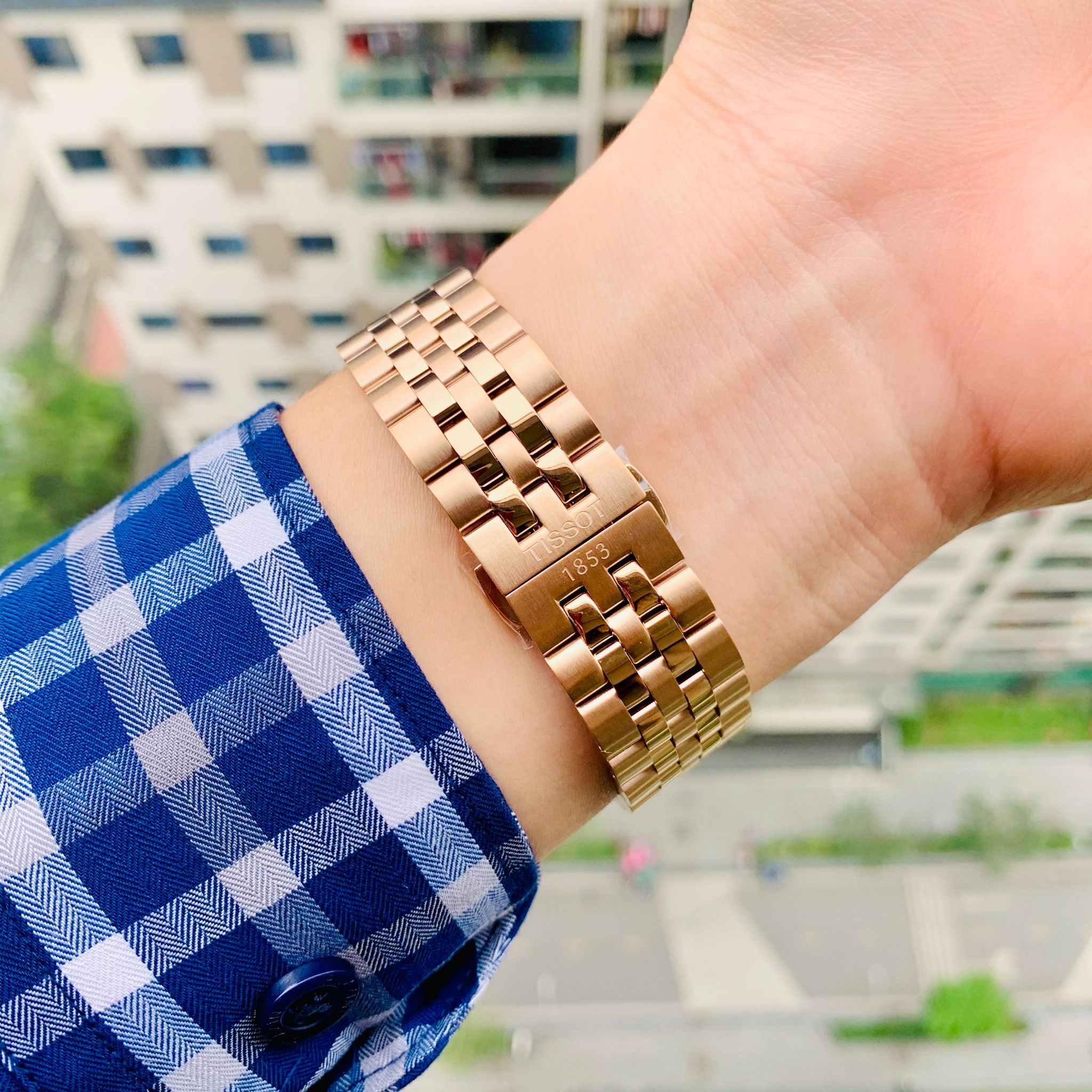 Bộ kim, cọc số và niềng Bezel dây đc mạ PVD RoseGold rất sang trọng và bắt mắt, đây cũng là điểm độc đáo riêng có của mẫu đh này, vì để kiếm 1 mẫu full vàng từ dây đến vỏ là rất hiếm