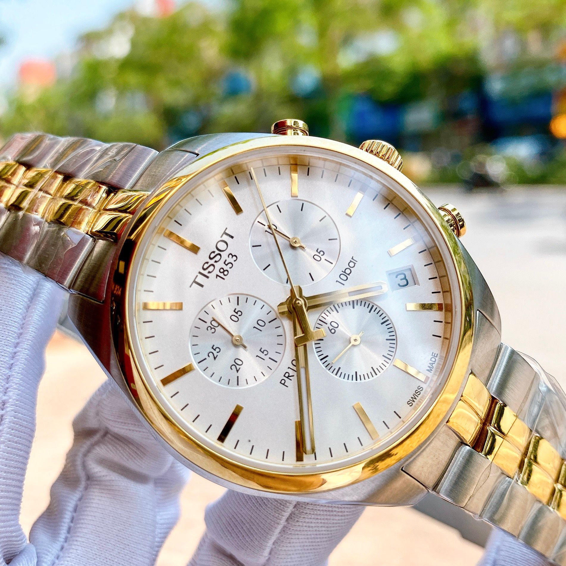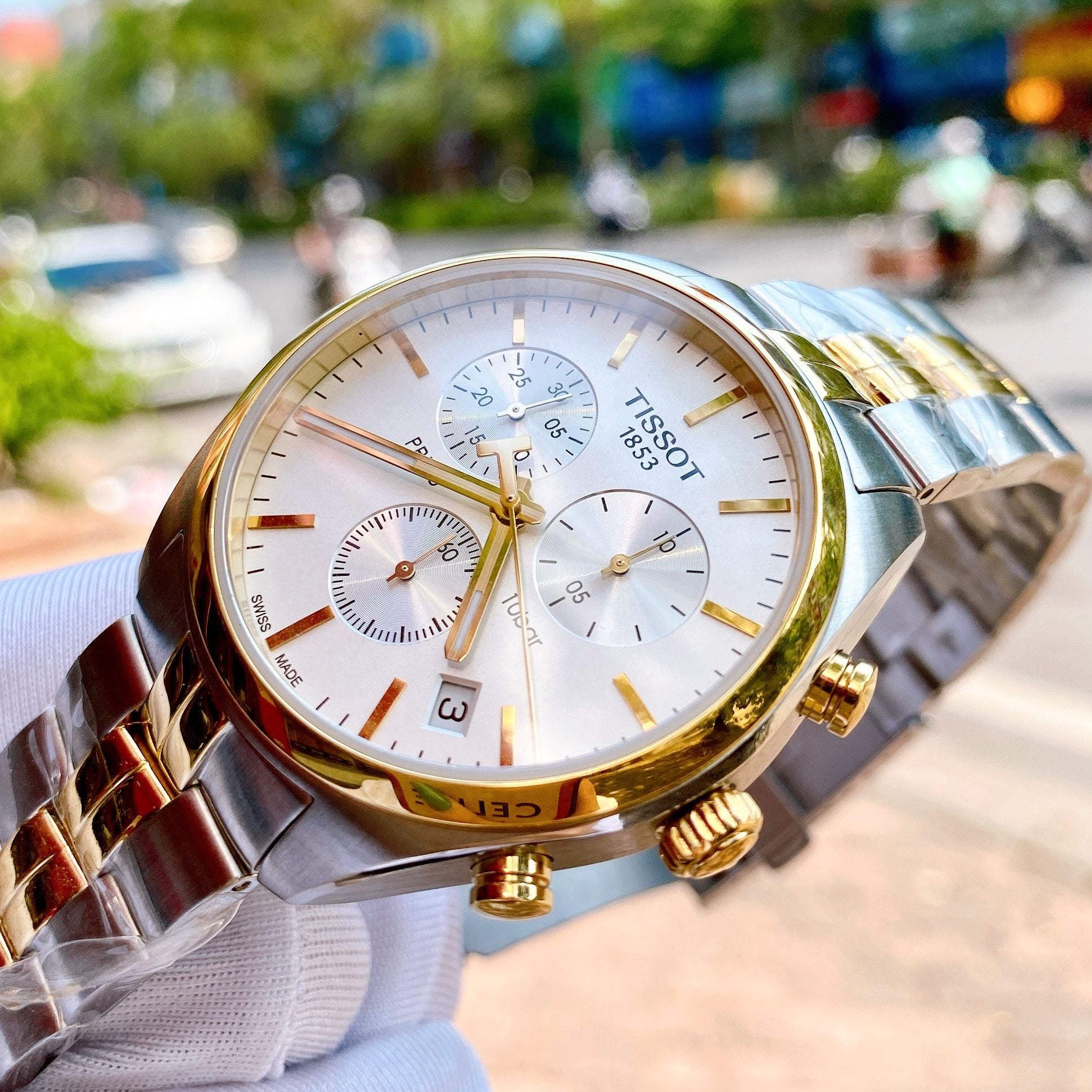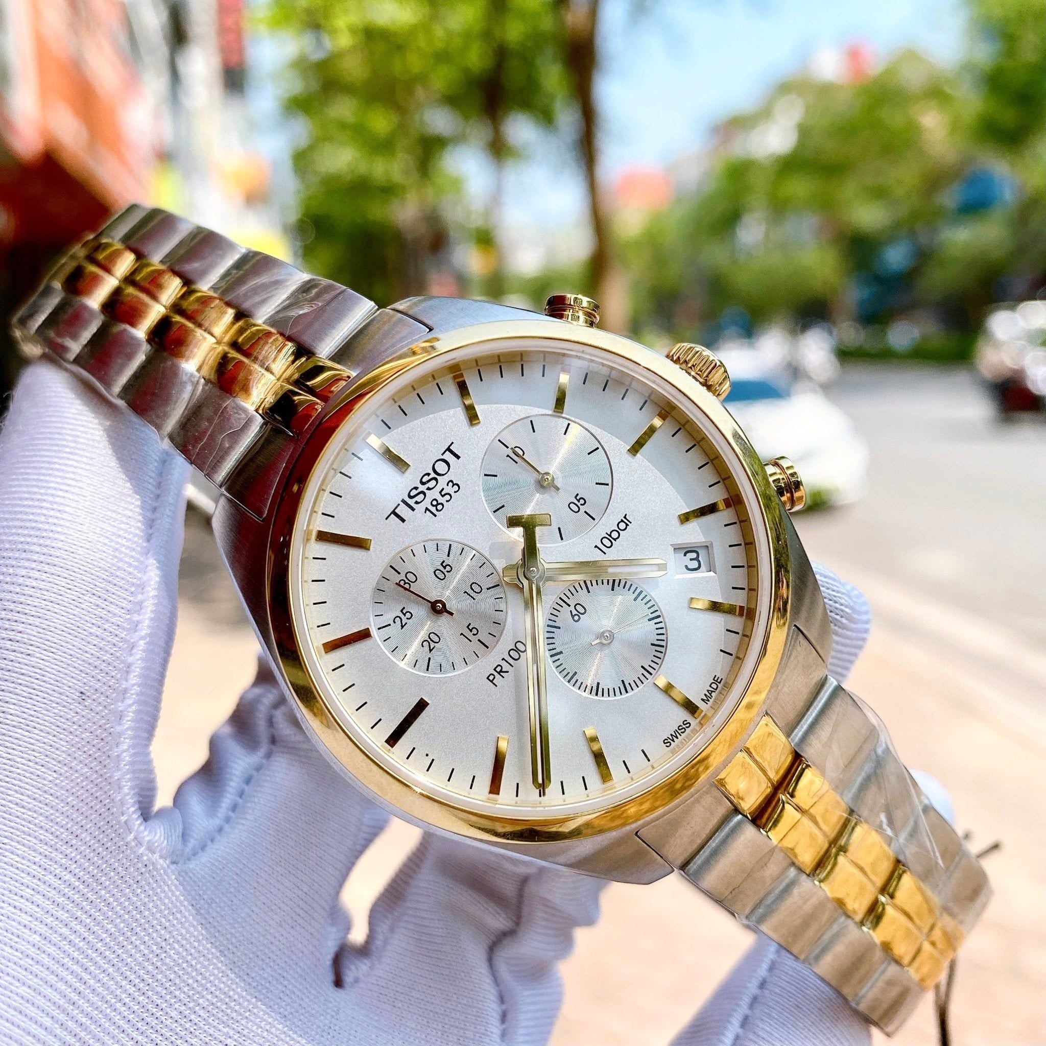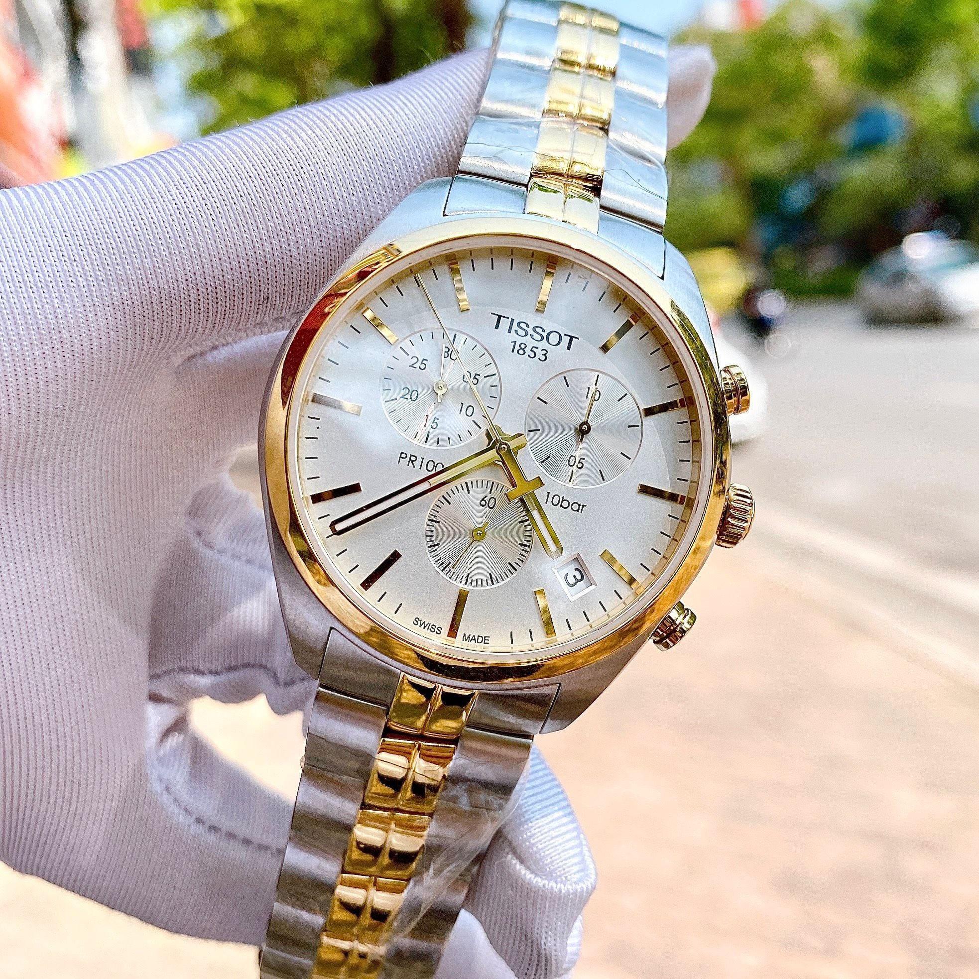 Dial trắng trẻ trung, các chi tiết kim, cọc số, vỏ đc mạ PVD DemiGold sang trọng