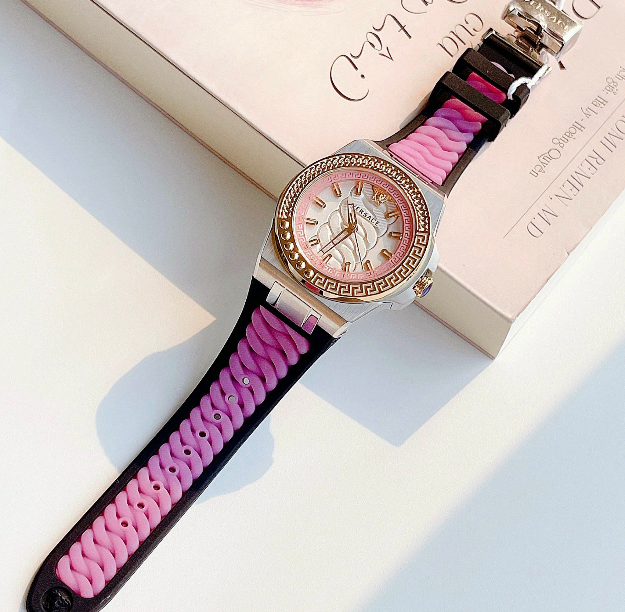 Versace Chain Reaction White Dial Purple Rubber Unisex Watch VEHD00220 - Đồng Hồ Nữ/Nam